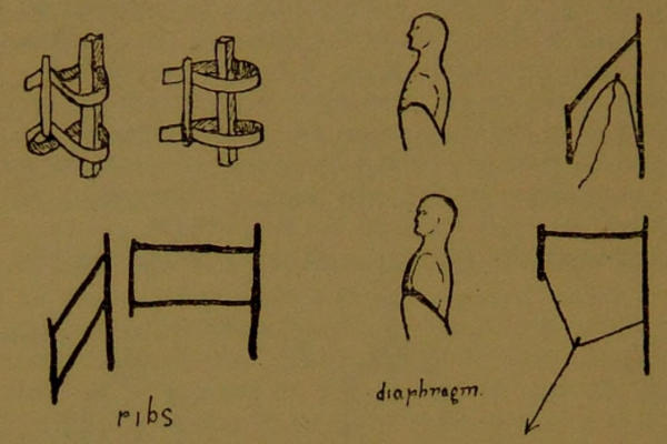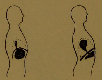 In other ways, however, than by their action on the vessels themselves do the muscles help the circulation. Exercise has secondary effects upon the circulatory and respiratory centres in the base of the brain, and makes the heart beat more strongly and the diaphragm contract more forcibly. The influence of the latter upon the circulation we have already described; but its vigorous action is required not only to aid the circulation through the liver and viscera, but to inflate the lungs to their fullest extent. In the breathing of a man who takes no exercise only a small part of the air which the lungs hold is pumped out at each breath, the greater part remaining stagnant in chambers which are practically unused. Thus, not only is the revenue of oxygen diminished, but there are numerous little crannies in the body filled with still, warm air which are ideal nurseries for bacteria. The devil of consumption does not allow such dwellings to long remain swept and garnished.