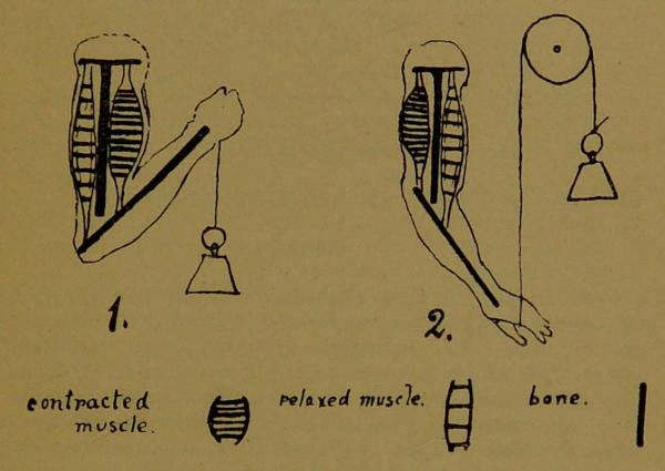 The muscles, moreover, must be well developed and[98] kept in a healthy condition for their own sake. They form a large part of the whole bulk, and no healthy man can have unhealthy muscles. Ignorant people sneeringly say that they have no ambition to lift weights or bend pokers; but they should remember that they are dependent upon their muscles for their bodily warmth, and also to save their internal organs from being oppressed by their own weight.