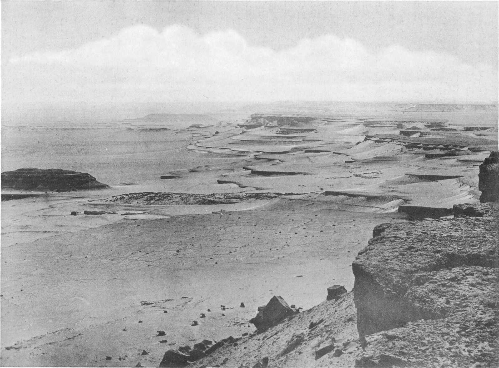 | IX. — | Upper beds of Fluvio-marine series with basalt cap, looking west from the eastern extremity of Jebel el Qatrani | „ | 53 |