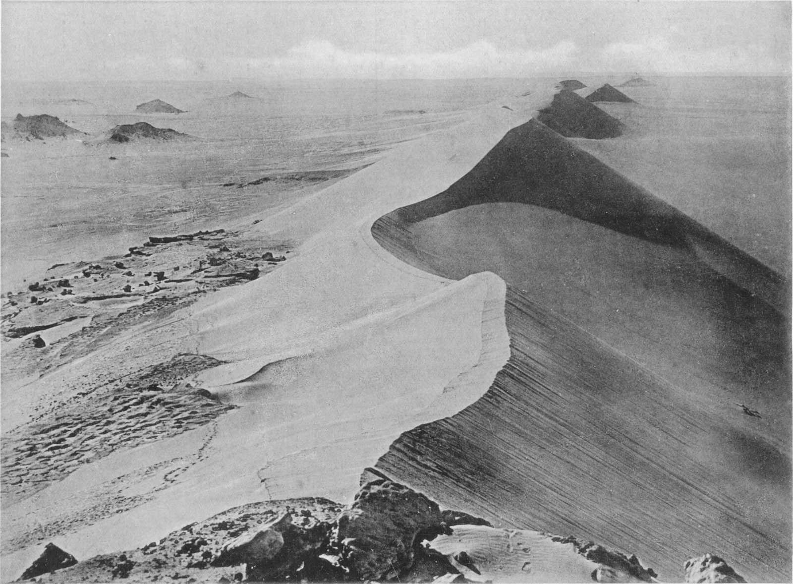 | Area and features. Dip-slope of surface. Drainage basins of central plain. Pools formed by rainfall. Tamarisk growth. The eastern area covered by alluvium. The bounding plateau to the north. Ghart el Khanashat dunes | 24 |