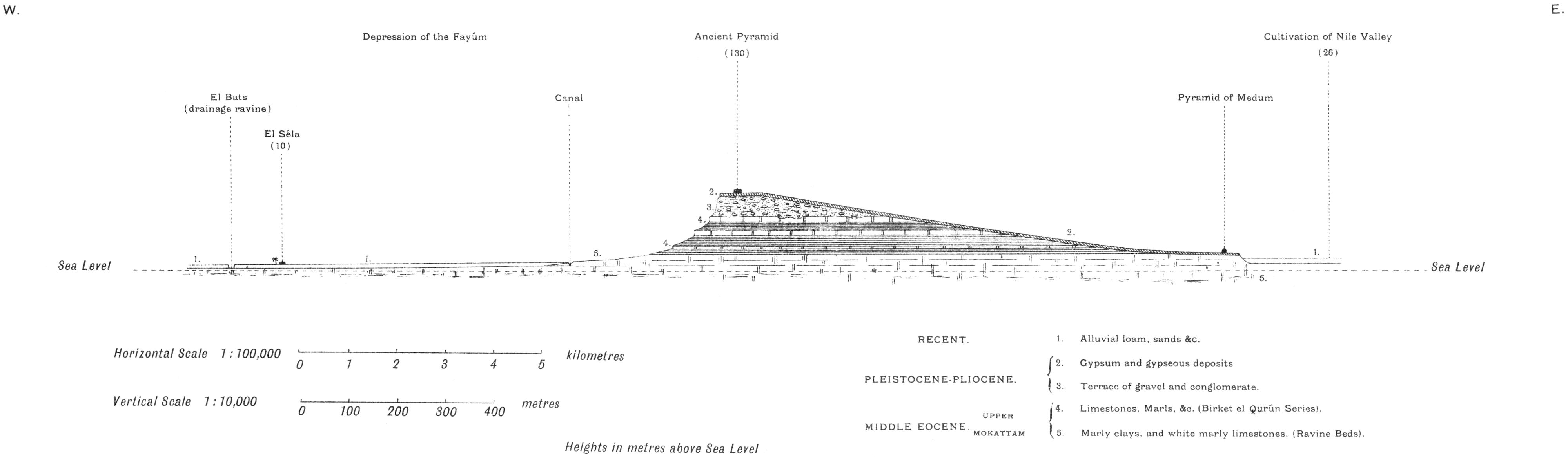 SECTION FROM SIDMANT EL JEBEL IN THE NILE VALLEY THROUGH MEDINET EL FAYÛM TO THE SUMMIT OF JEBEL EL QATRANI, NEAR WIDAN EL FARAS.