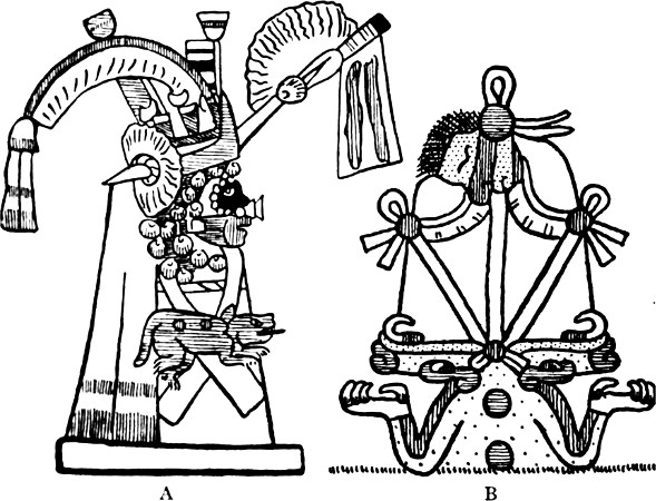 [11] The use of the rising of the morning star to commence a solar time-count would explain the peculiar fact that the commencement of the year never coincided with that of the tonalamatl. It has been stated (p. 77) that the initial days of the Venus-periods were cipactli, coatl, atl, acatl, and olin; cipactli being the initial day also of the tonalamatl. But the day acatl was not only one of the initial days of the 365-day year, but was the initial day also of the Mexican double cycle of 104 years, which was in addition the initial day of a complete cycle of Venus-periods. The conclusion is tempting, that after the invention of the tonalamatl, correlated with the observation of the planet Venus, a change was made to solar time as near as it could be observed. As a starting-point for the new system, the next heliacal rising of the planet was awaited, and this occurring on an acatl day fixed the “year-bearers” as acatl, tecpatl, calli, and tochtli. It will be remembered that the Mexicans believed that the historical sun rose on the day 13. acatl (p. 73). At any rate, the Venus-period seems to form a link between the tonalamatl and the year of 365 days. The fact that none of the gods of the hunting-tribes find a place among the deities presiding over the tonalamatl would seem sufficient proof that the Chichimec, Aztec, and Otomi had no hand in its invention.