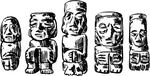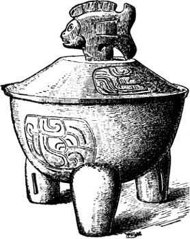 The position which must be assigned to the Zapotec raises a question of considerable interest. Their indebtedness to Maya culture is obvious from the consideration of a large proportion of their architectural remains and their art, but certain peculiar features make their appearance. In the first place, no migration legends are recorded, while the fact that certain localities were held to be the entrance to the underworld rather emphasizes the “indigenous” nature of the population. Again, though cremation makes its appearance among the later Maya, the Zapotec, for religious reasons, held out against it, practising, in the main, secondary burial. Finally, certain forms of ornament applied to architecture (as at Mitla) and to pottery (as at Cuicatlan) are unique in this part of America. Of interest is the fact that the geometric ornament at Mitla finds an exact parallel in the stucco decoration of some of the early ruins of the Peruvian coast, while the designs of the Cuicatlan pottery reproduce with equal exactness a favourite textile ornament belonging to the same region. Certain of the Peruvian coast-dwellers preserved traditions of immigration by sea, and these combined facts might be taken as a vague indication of early coasting-voyages down the west coast of America. It would be rash to put this forward as a definite theory, but at any rate further investigations in this direction might prove of great interest. The Zapotec at one period seem to have extended considerably further north than in later times, and to have been driven south by the Mixtec who at least contained an immigrant element. The peculiar slab discovered at Placeres del Oro seems to[370] bear some affinity with Zapotec reliefs, but here again the “Peruvian” character of the decoration is paramount. Affinities with Peruvian archæology extend into Michoacan, where the practice of providing the mummy-pack of the dead with a false head prevailed, and similarities with Peruvian beliefs may be seen in the Mexican custom of providing the deceased with a dog to convey his soul to the underworld, and in ill-treating dogs during eclipses of the moon. Resemblances also exist between the Peruvian and Maya cultures; certain stone reliefs showing a figure seated in a niche have been found at Manabi in Ecuador (where again traditions of immigration by sea survive), which look very like travesties of some of the Piedras Negras stelæ; while the famous monolith discovered at Chavin de Huantar in the Andes bears a very distinct “Maya” stamp, though it is related also to the art of the Nasca valley. But great caution is necessary in dealing with similarities of this nature, which may arise from no more than a common psychology, and may bear witness only to the “American” basis shared by both cultures.