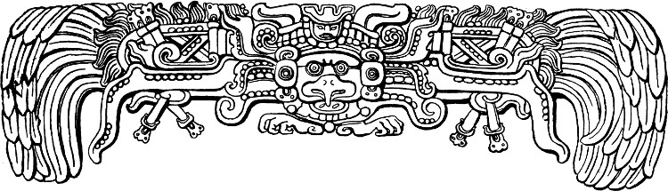 The chief objection to this theory of the origin and development of the Maya culture, as far as I can see, is that in Guatemala and Honduras no certain traces of a proto-Maya culture have as yet been discovered, but that the civilization springs, as it were, full-blown from the earth. The answer would be that the finest ruins have focussed all attention up to the present, and that earlier manifestations of the culture have not been[369] sought, while the difficulties afforded by environment and climate place serious obstacles in the way of systematic excavation. Further, the art itself affords many indications that it is based upon wood-carving, and the conditions are not favourable to the survival of any remains save those constructed in stone.