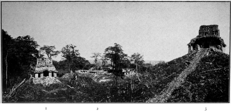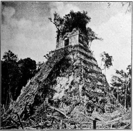 1. Restoration of the ball-court temple at Chichen Itza, Yucatan; after Maudslay. (See Plate XXVIII)