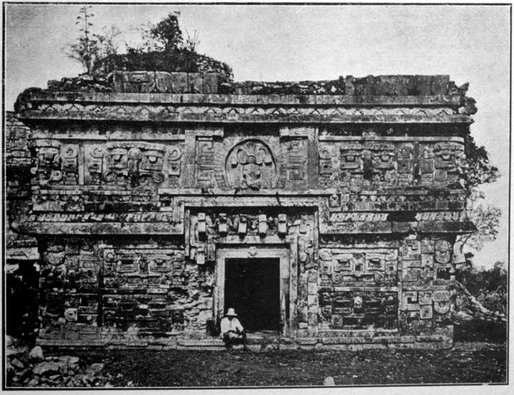 The Maya appear to have resorted occasionally to caves as dwelling-places, and certain investigations have been made in caverns at Copan and Loltun (immediately south of Uxmal), in Yucatan. The remains however do not imply that their occupation was of early date, and it is probable that the caves served as places of temporary refuge in times of war. This chapter would be incomplete without some mention of the peculiar bottle-shaped subterranean structures found at certain sites in Yucatan. These are known as “chultunes,” and, since they invariably occur at places remote from rivers, may almost certainly be regarded as cisterns for preserving a supply of water, though in some cases they have served the secondary purpose of burial chambers. They are lined with dressed stone or a coat of stucco, and the mouth is furnished with a stone ring which is closed by a slab. Careful exploration of the chultunes at Labna has been made by Thompson and reported in the “Memoirs” of the Peabody Museum.
