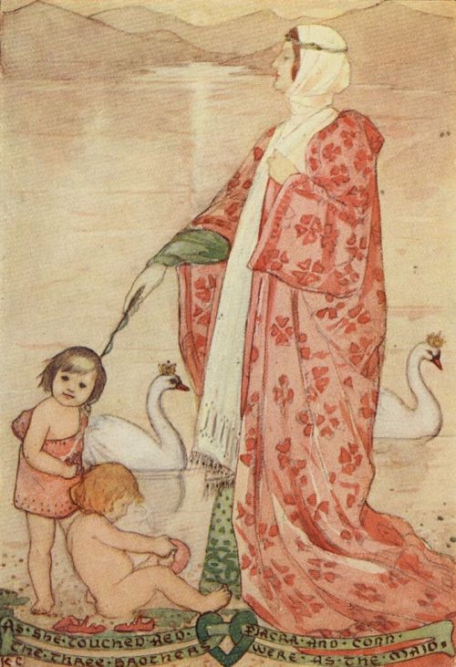 And because of the words that the King Concobar had spoken, the life of the babe was spared, and when the days of feasting were past, Concobar returned to his palace, and with him he took the infant child and her mother. Yet after a month he bade the mother return to Felim her husband, but the babe Deirdre he kept.