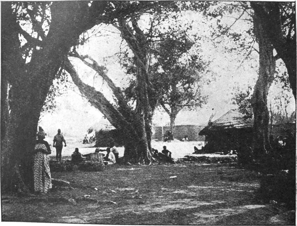 Les cases, construites en forme de rectangle allongé avec des toits débordants à arête, et d’ordinaire soigneusement alignées, sont spacieuses et en bon état, encore que d’un faible pittoresque ; bien que leurs matériaux soient empruntés à la forêt équatoriale, elles m’ont[19] rappelé, sous des dimensions moindres, les baraquements dont le Génie fait les camps. Mais, surtout dans les centres anciens, une admirable végétation borde la route, et ses rameaux bas et touffus l’ombragent par endroits tout entière. Les arbres utiles dominent d’ailleurs ; il y a là d’innombrables palmiers à huile, des bananiers aux longues feuilles larges, hautes, d’un vert clair ; des cacaoyers, des orangers, des manguiers. Des maisons qui témoignent d’une large aisance, propriétés de riches indigènes, se dressent fréquemment parmi ces cases. Dans ce décor, un mouvement, un ordre, une activité laborieuse qui s’imposent à l’attention et contribuent à donner l’impression très nette d’une évolution économique et sociale orientée vers le bien-être et le progrès.