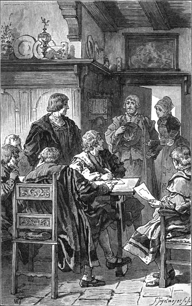 „Ich bin kein Freund von Kinderheiraten,“ versetzte der Ratsherr steif, „dergleichen überlassen wir nüchternen Städter den Fürsten und hohen Herrn. Über zwölf Jahre mag Margarete selbst entscheiden, ob ihr der Freier gefällt, den ihr der Vater ausgesucht hat.“