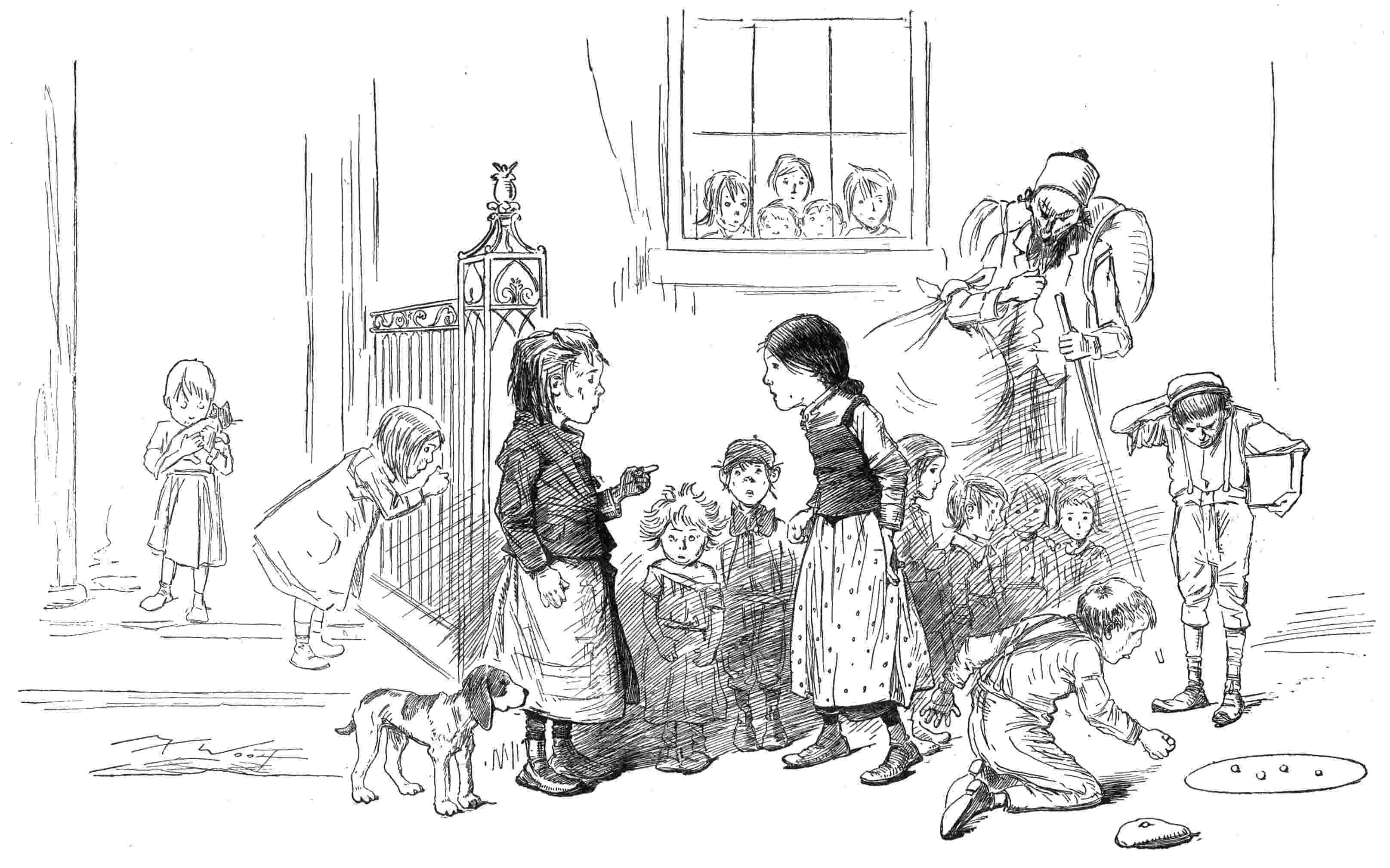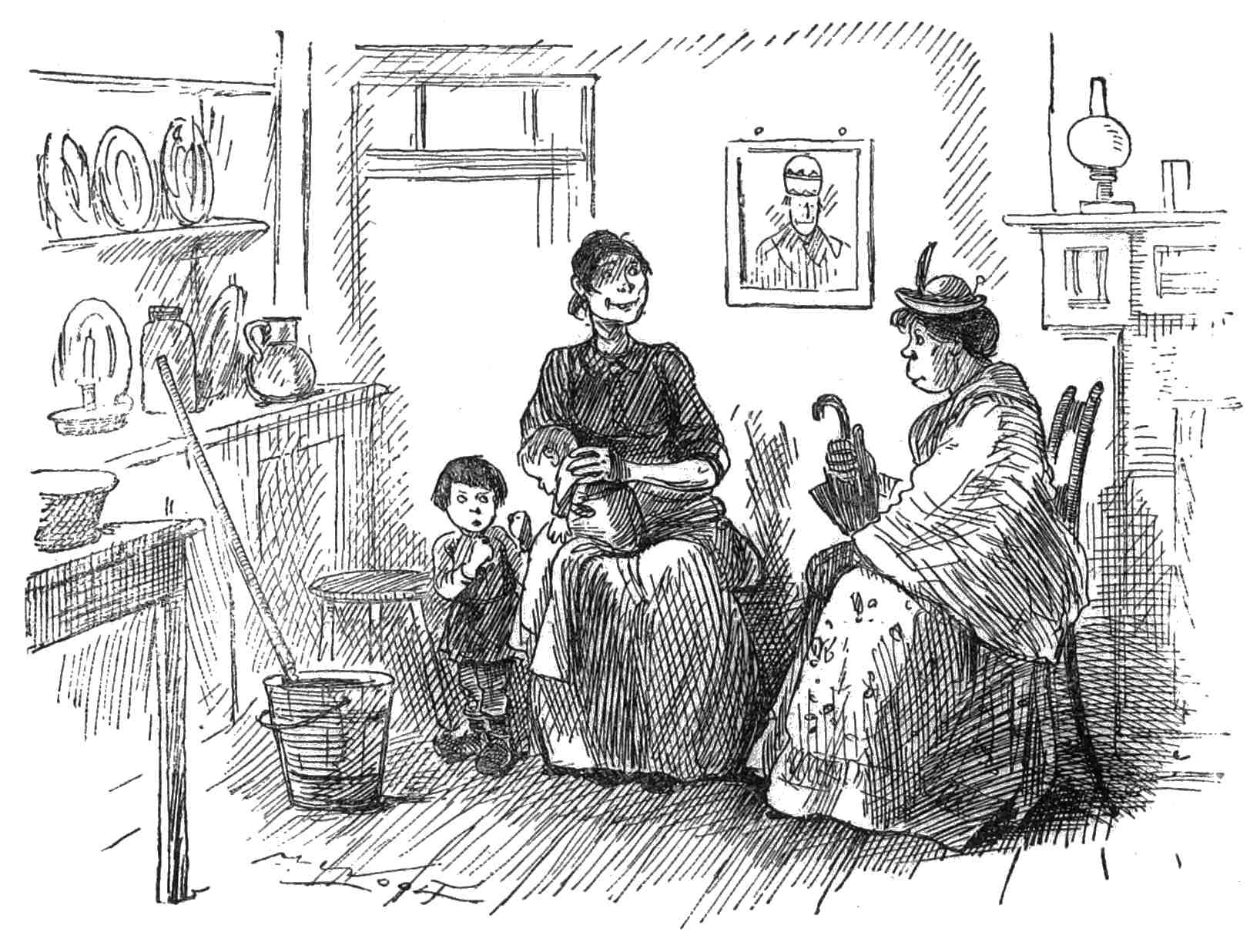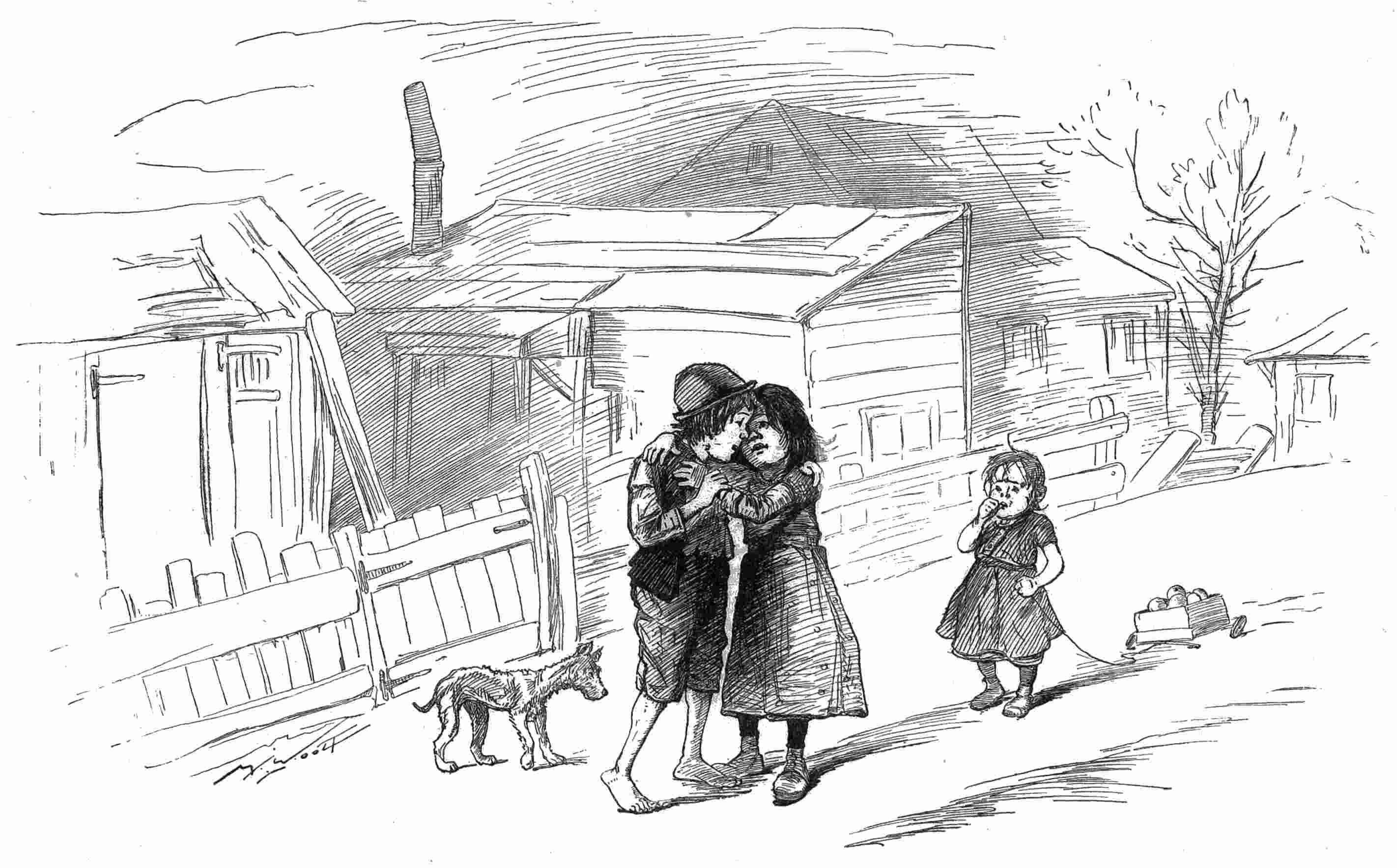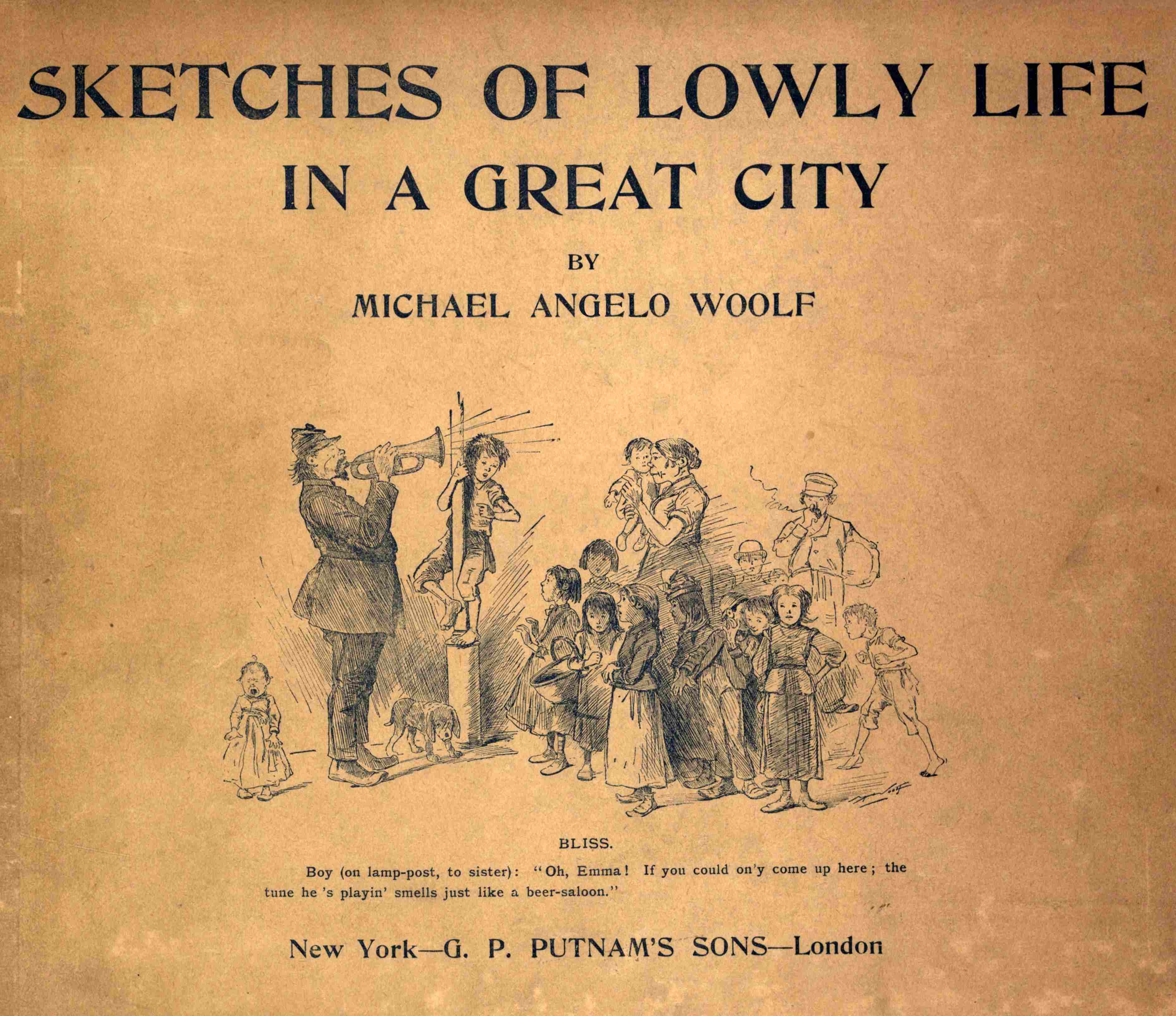 Michael Angelo Woolf was born in London, England, August 27, 1837. His father was Edward Woolf, a musician of eminence, and a man of versatile talent in both art and literature. Michael Woolf was brought to America in his infancy; his talent manifested itself early, and he contributed as a young man to many prominent periodicals. For a number of years he turned aside from draughtsmanship to pursue an actor’s career, and two charming autobiographical reminiscences of this period of his life appeared in the Saturday Evening Post, of Philadelphia, shortly after his death. At the close of the Civil War, Mr. Woolf resumed his original profession, but turning his attention more to painting, was hampered by the remissness of his early training, and sought regular art instruction, for the first time in his life, at the hands of Edouard Frère in France. Upon his return to America he exhibited a much admired painting, “How It Happened,” at the National Academy of Design. In his later years he turned his endeavors almost entirely to the delineation of child life among the poorer classes; and his drawings, with their peculiar combination of humor and pathos, have become widely known here and abroad.