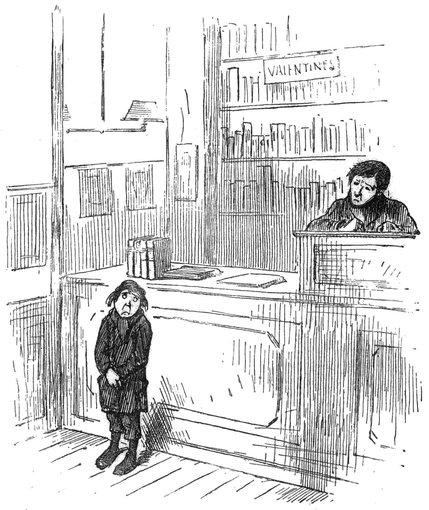 “I say, mister, have yer got a penny walentine what rhymes ter Maggie?”