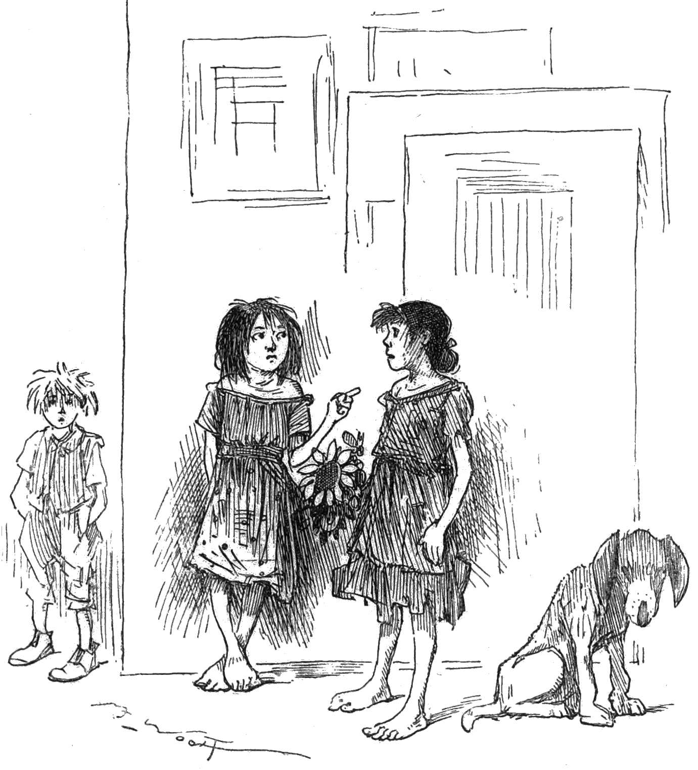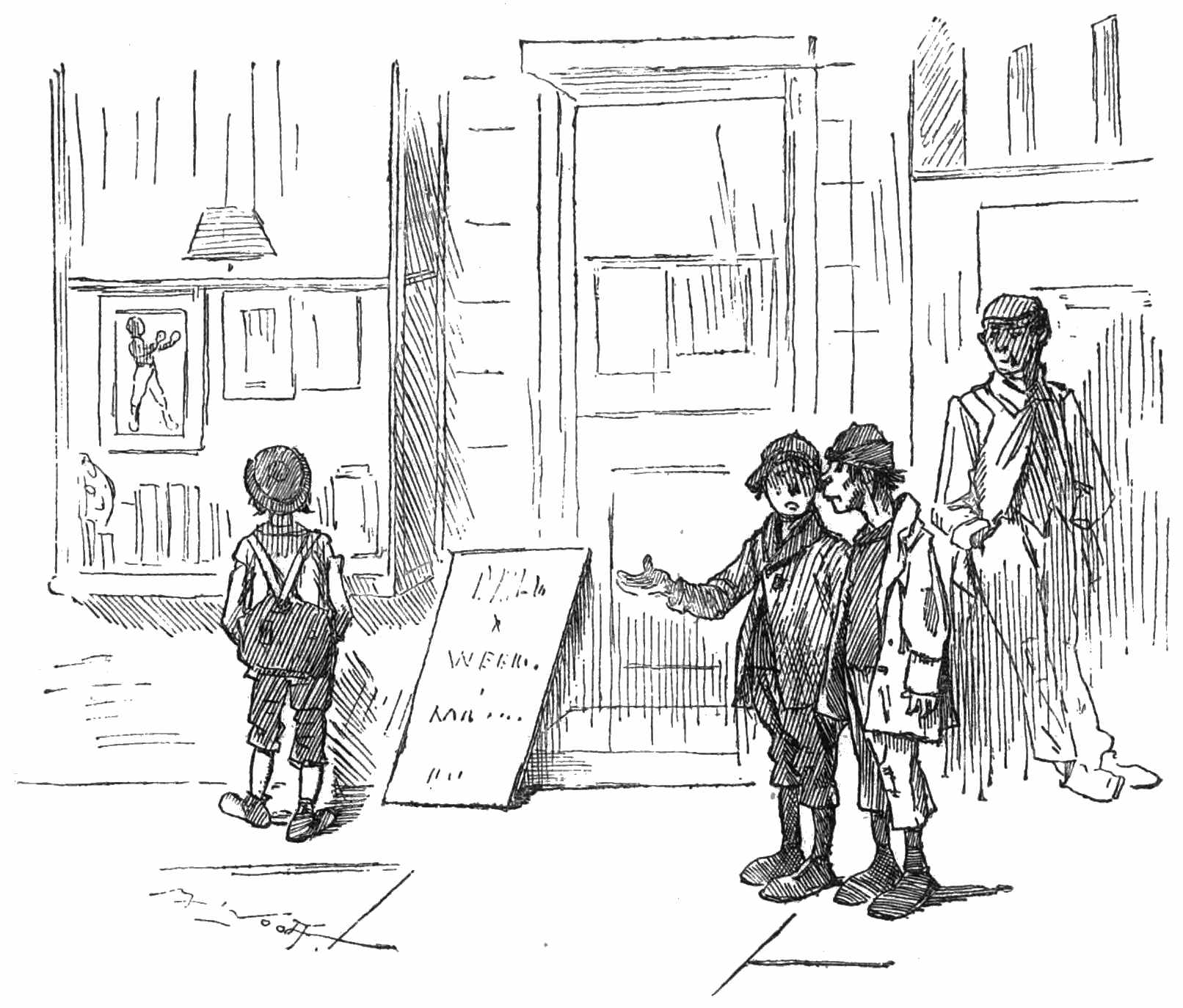 Girl: “Please, ’m, give me an’ me brudders an’ sisters suthin’?”