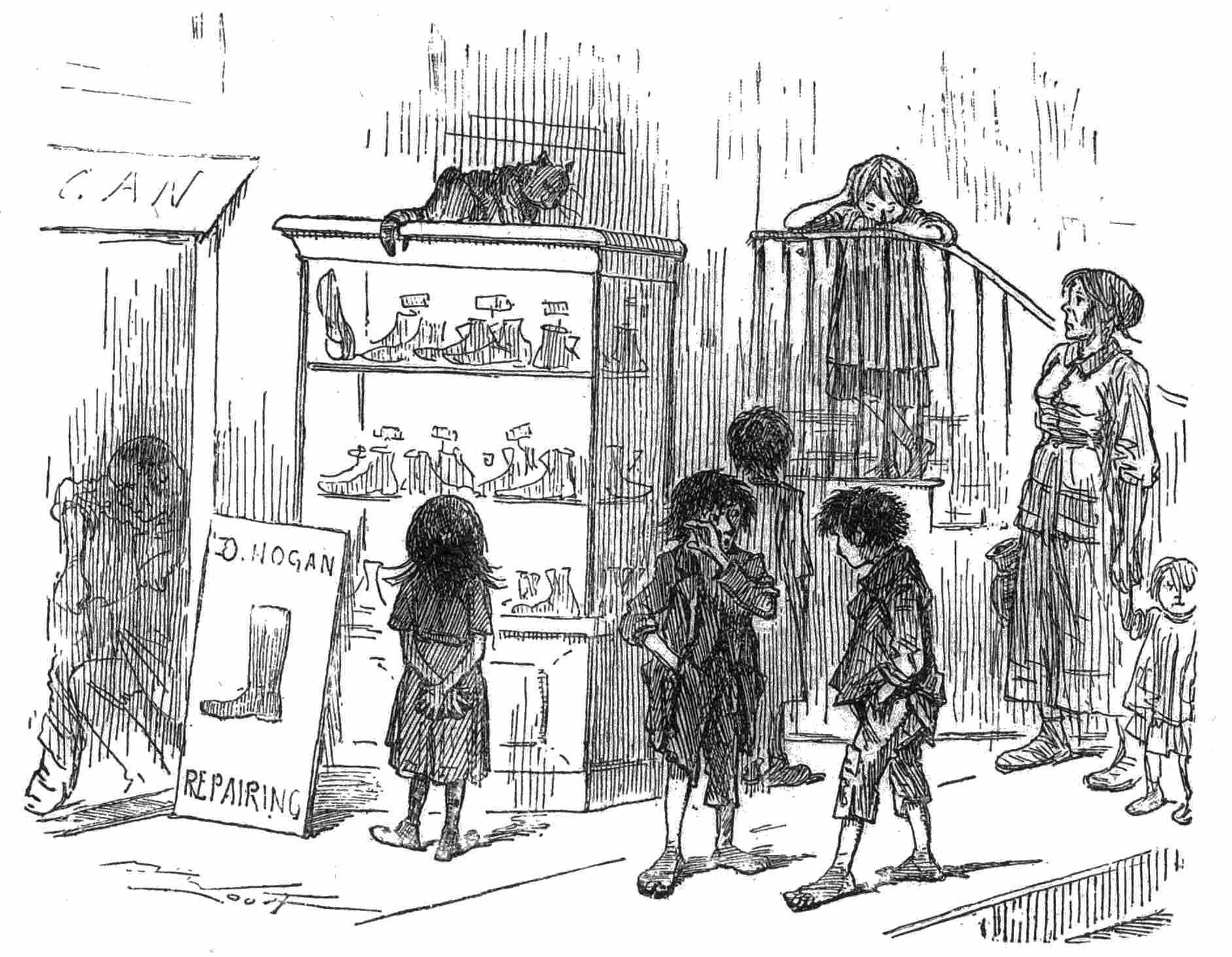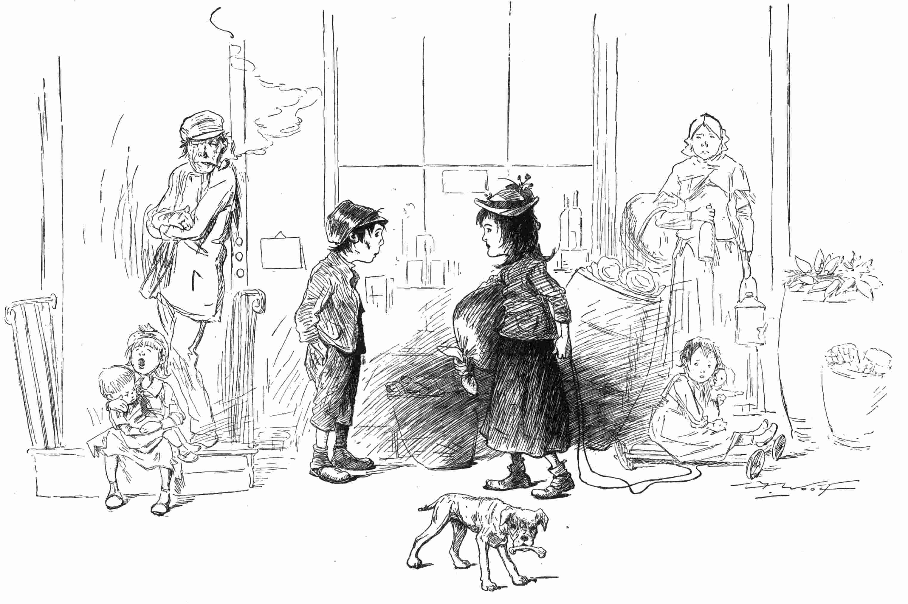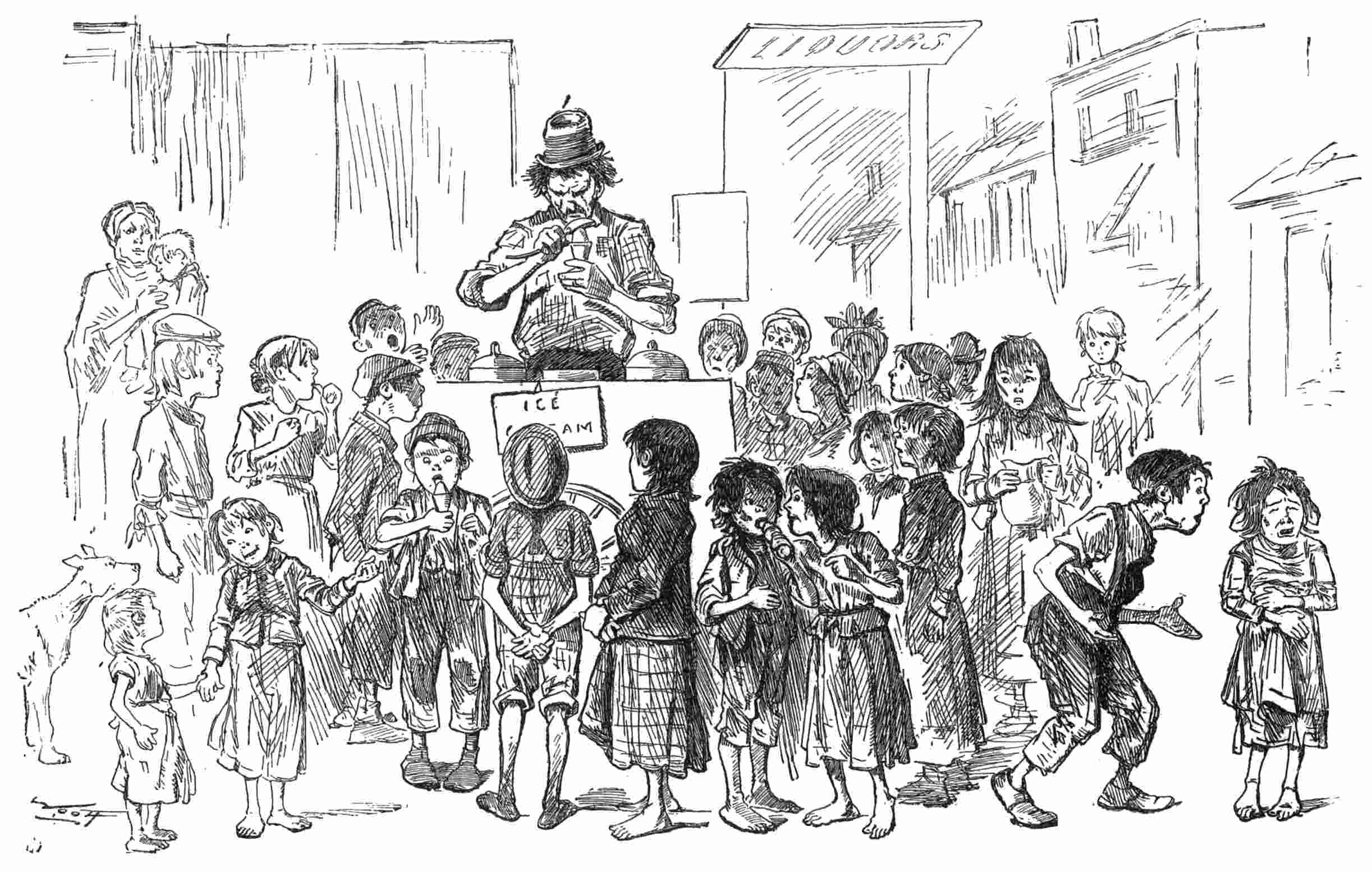“No, Tom, no. Yer don’t know her, an’ yer don’ want ter. She’s de ice-cream fiend of de ward; she’s beggared two newsboys an’ a Italian bootblack, an’ she’s a looking roun’ for another wictim.”