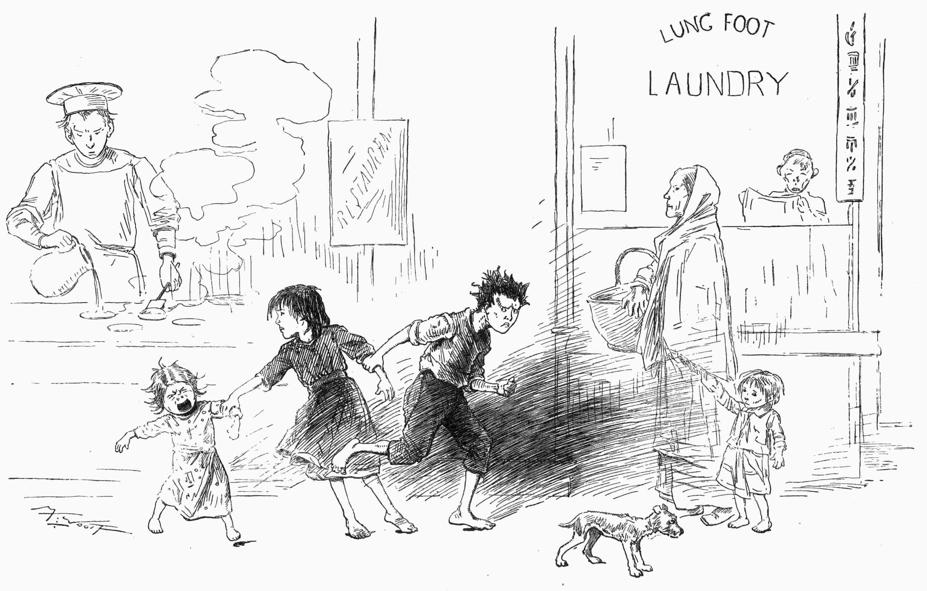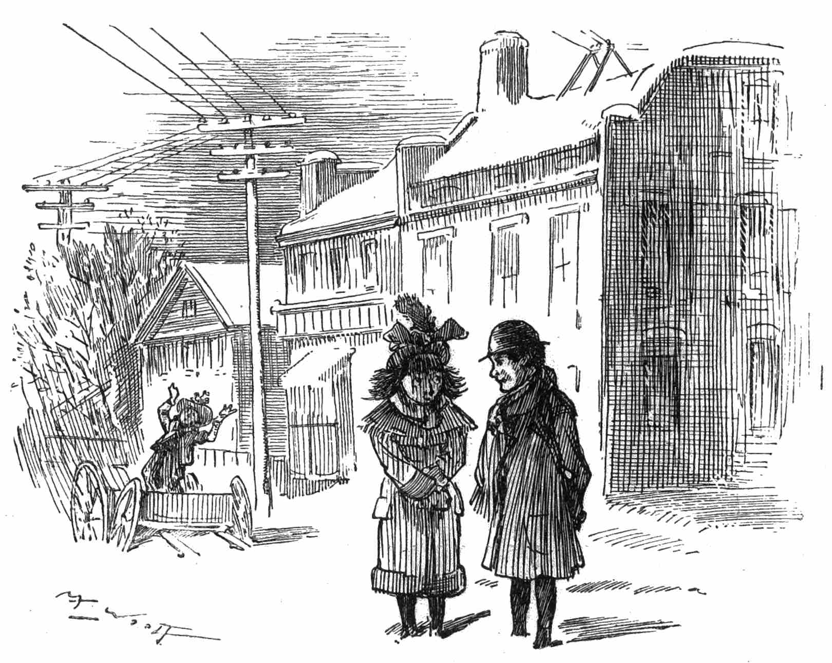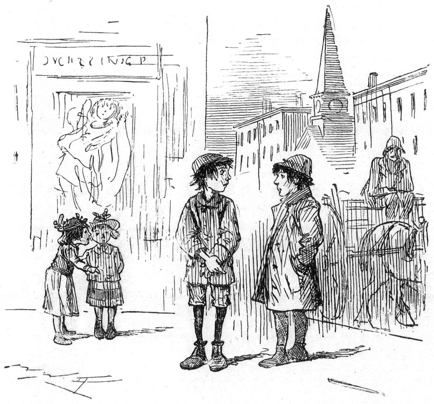 “No, Tom, no. Yer don’t know her, an’ yer don’ want ter. She’s de ice-cream fiend of de ward; she’s beggared two newsboys an’ a Italian bootblack, an’ she’s a looking roun’ for another wictim.”