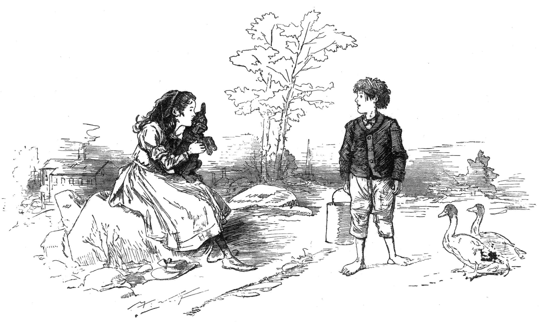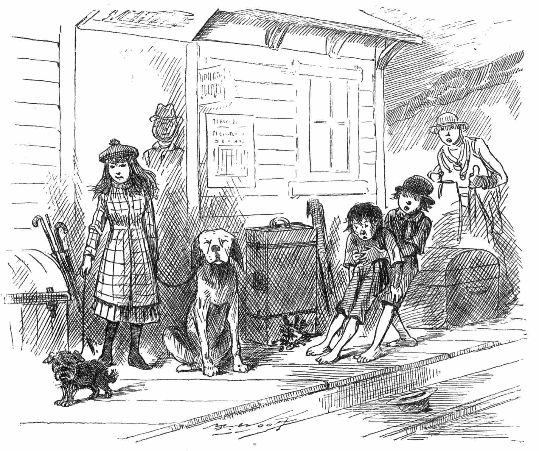 Boy.—“I ain’t askeered o’ the dog. I’m a envyin’ him, that’s all.”