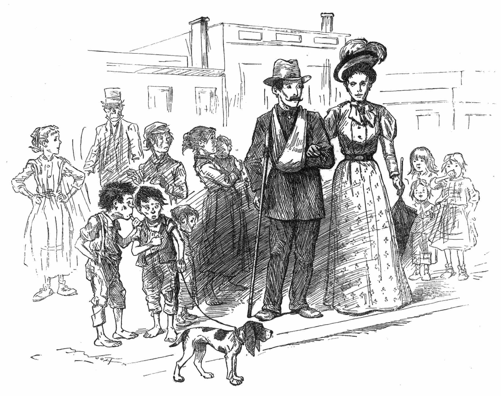 Lizzie: “Only wunst in my life, an’ that wuz when I wuz in the horspital wid a broken arm; an old lady kissed me an’ I blushed like a child!”