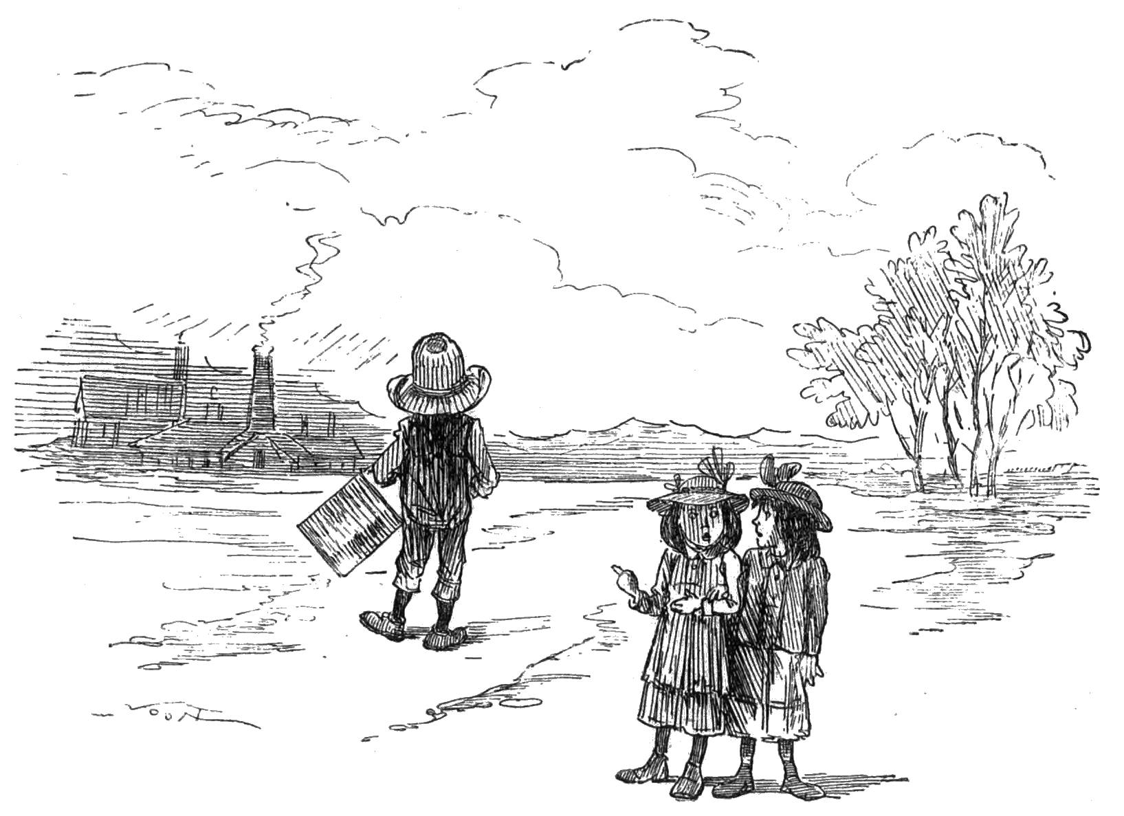 Boy (from Country Circus tent): “Hey fellers, run home an’ get de money to come in even if yer have ter steal it! It’s immense! De clown’s a-standin’ on his head an’ de baby elephant’s a-chuckin’ a pint o’ pop corn into his ears! Don’t yer wish’ t yer wuz me?”