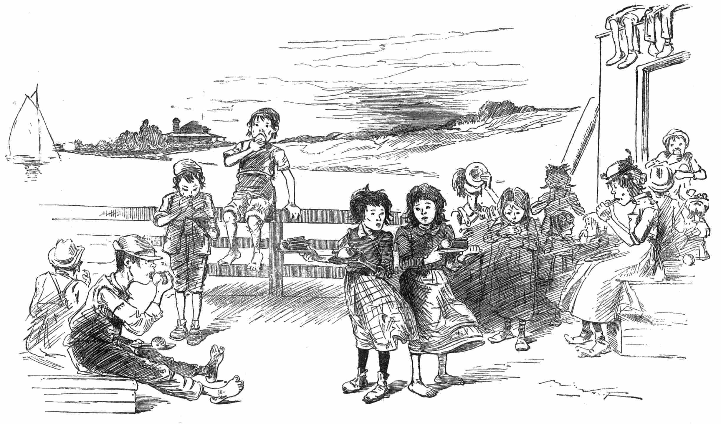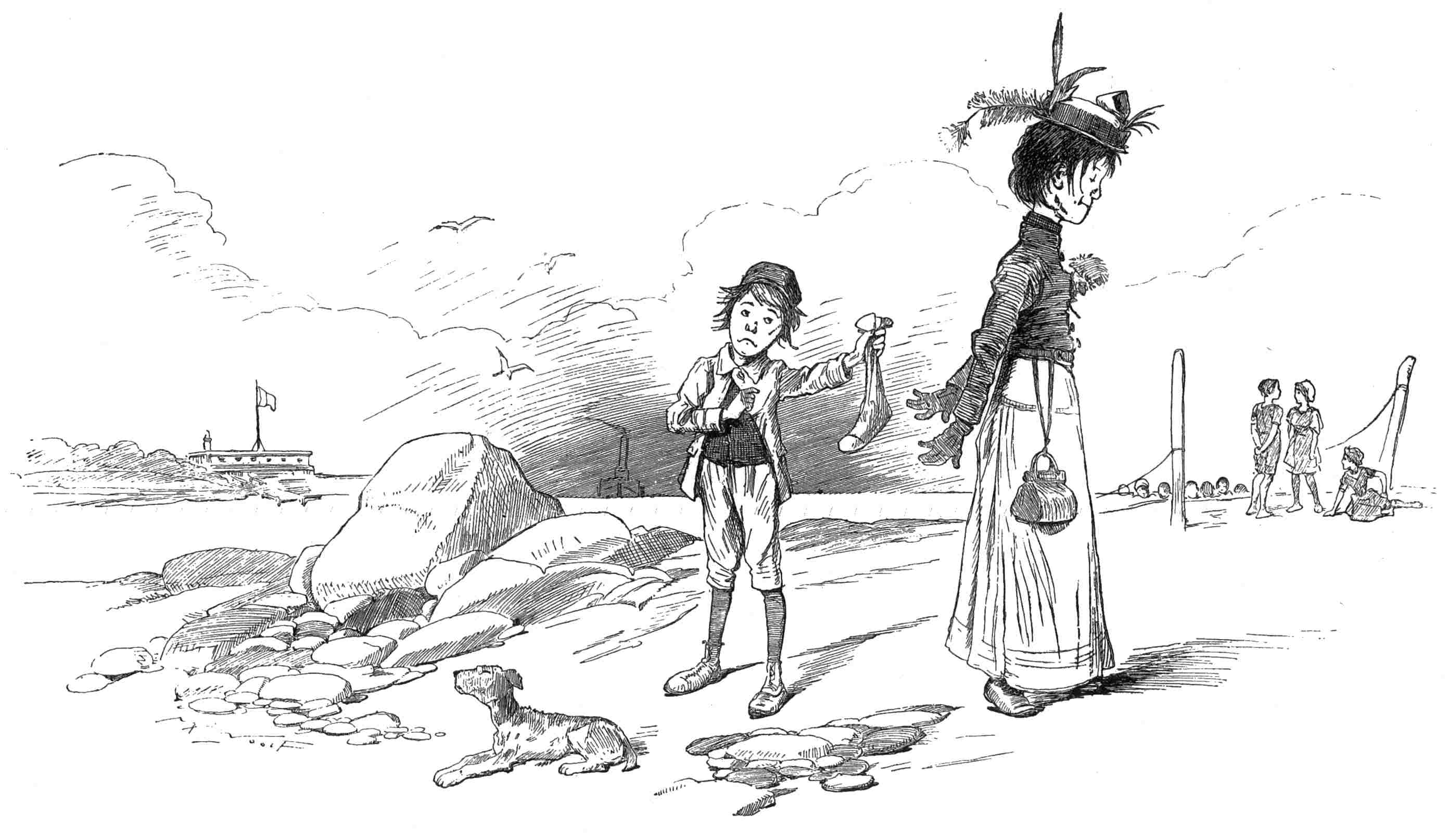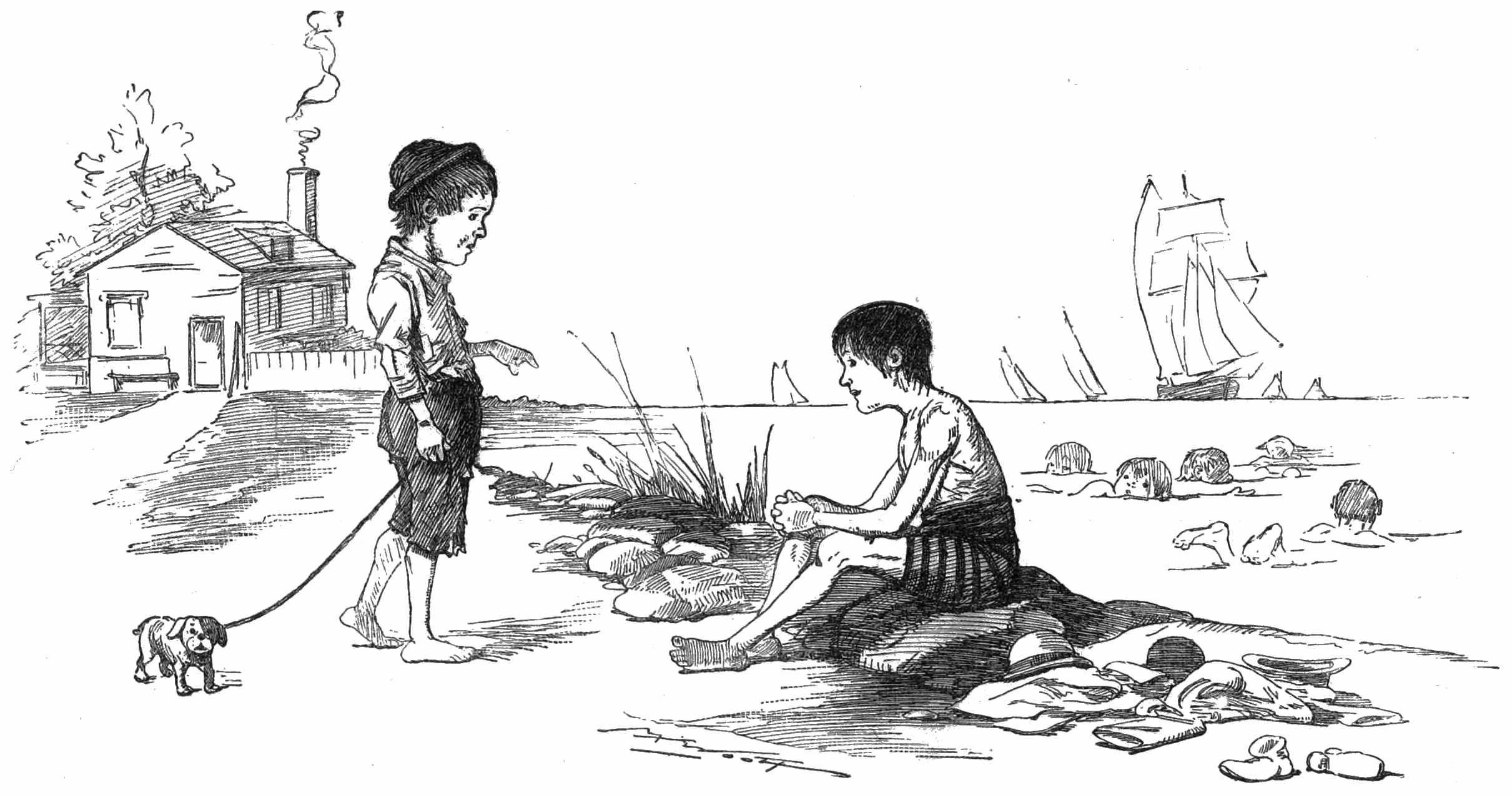 Bleak House Boy (to Digby, who set out to enjoy in quietness a sand and sun bath): “Supposin’ I wuz to tell you the entire willage is gone on a pic-nic, an’ supposin’ I wuz to brace you for fifty cents, an’ then supposin’ you cussed a bit an’ refused to giv’ it, wot’d you do supposin’ I set my dog on you?”