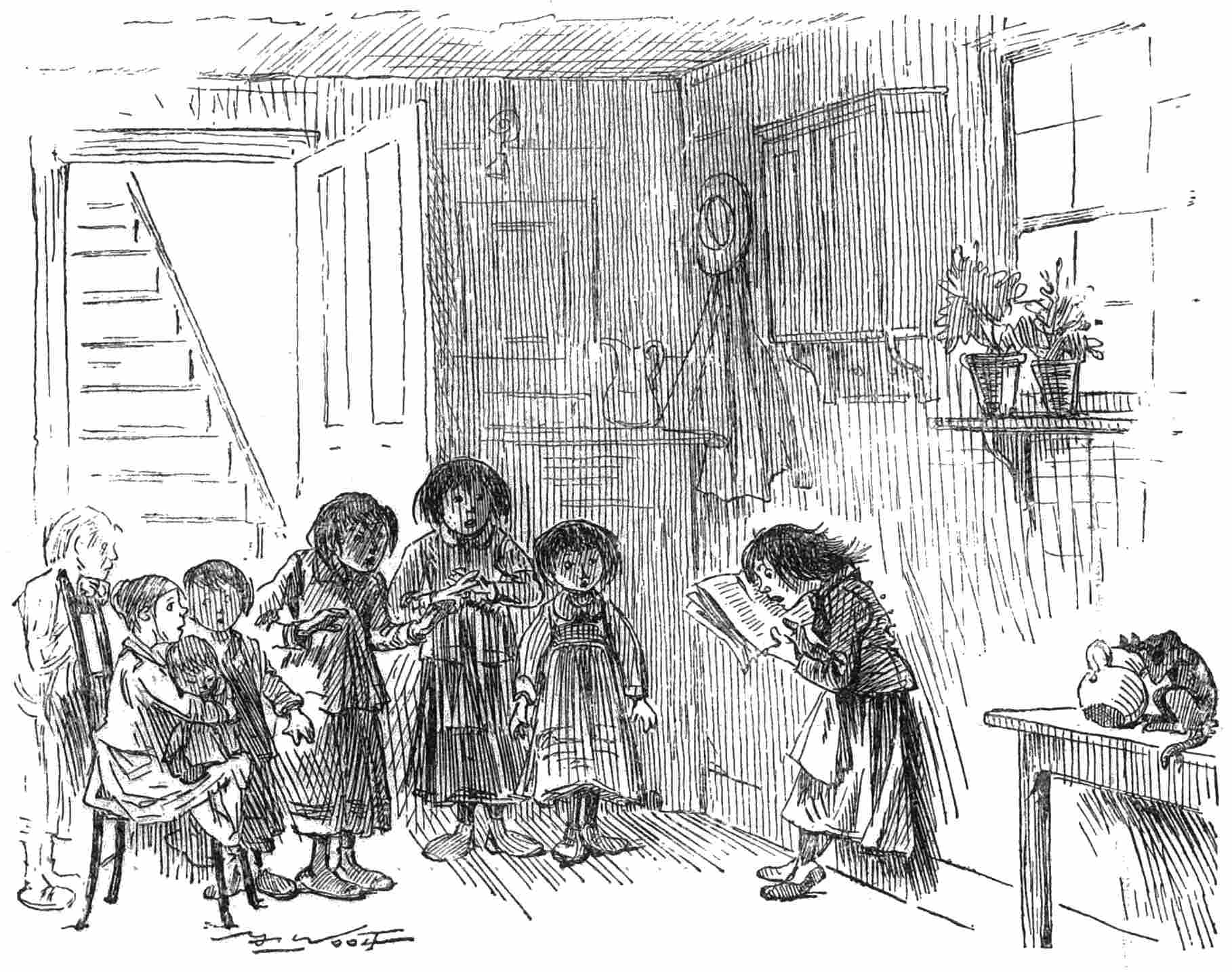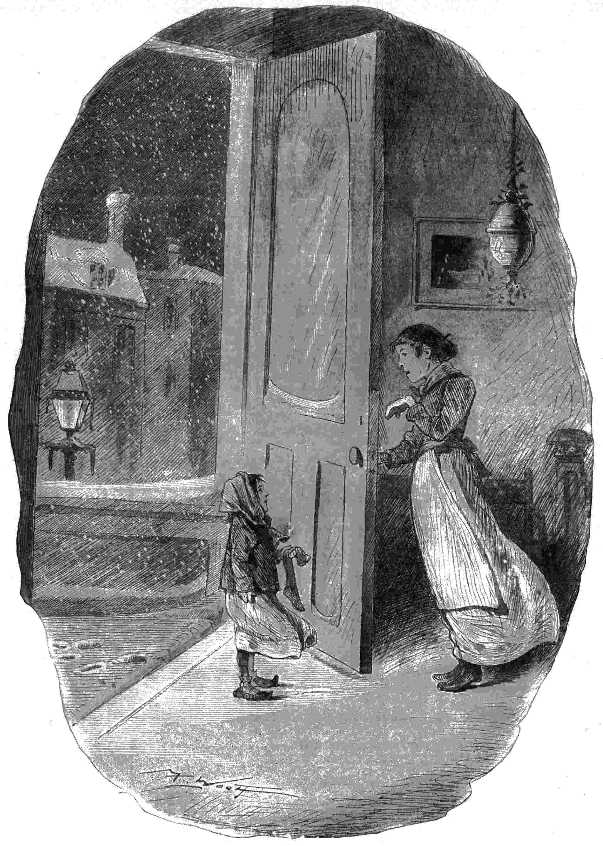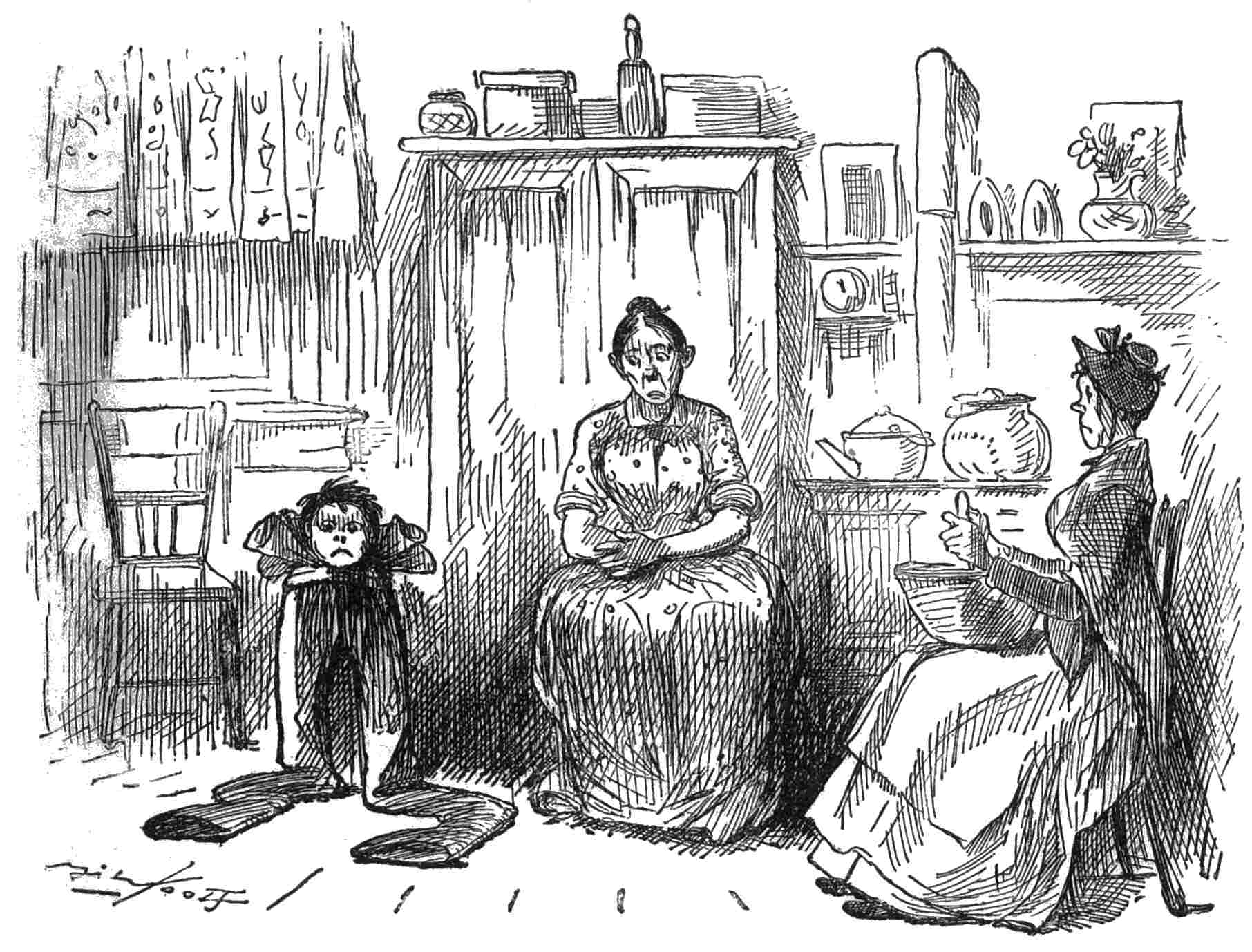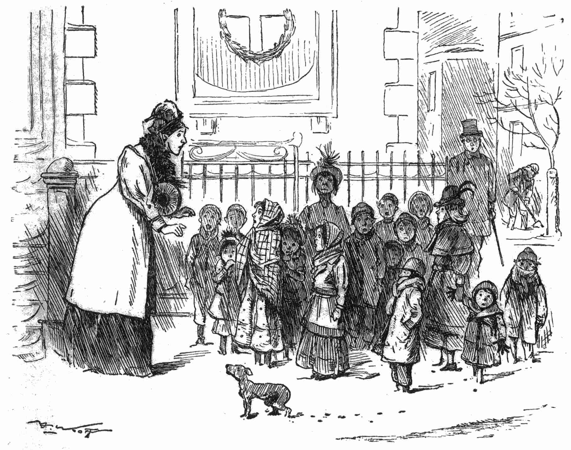 “If yer please, mum, Santa Claus can’t get into our room ’cause they ain’t no chimley, an’ I want ter know if yer won’t hang up this stockin’ when yer a-hangin’ up the children’s, an’ I’ll call in the mornin’ fer it.”