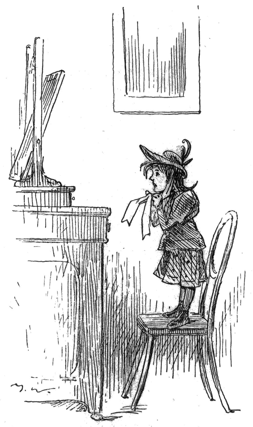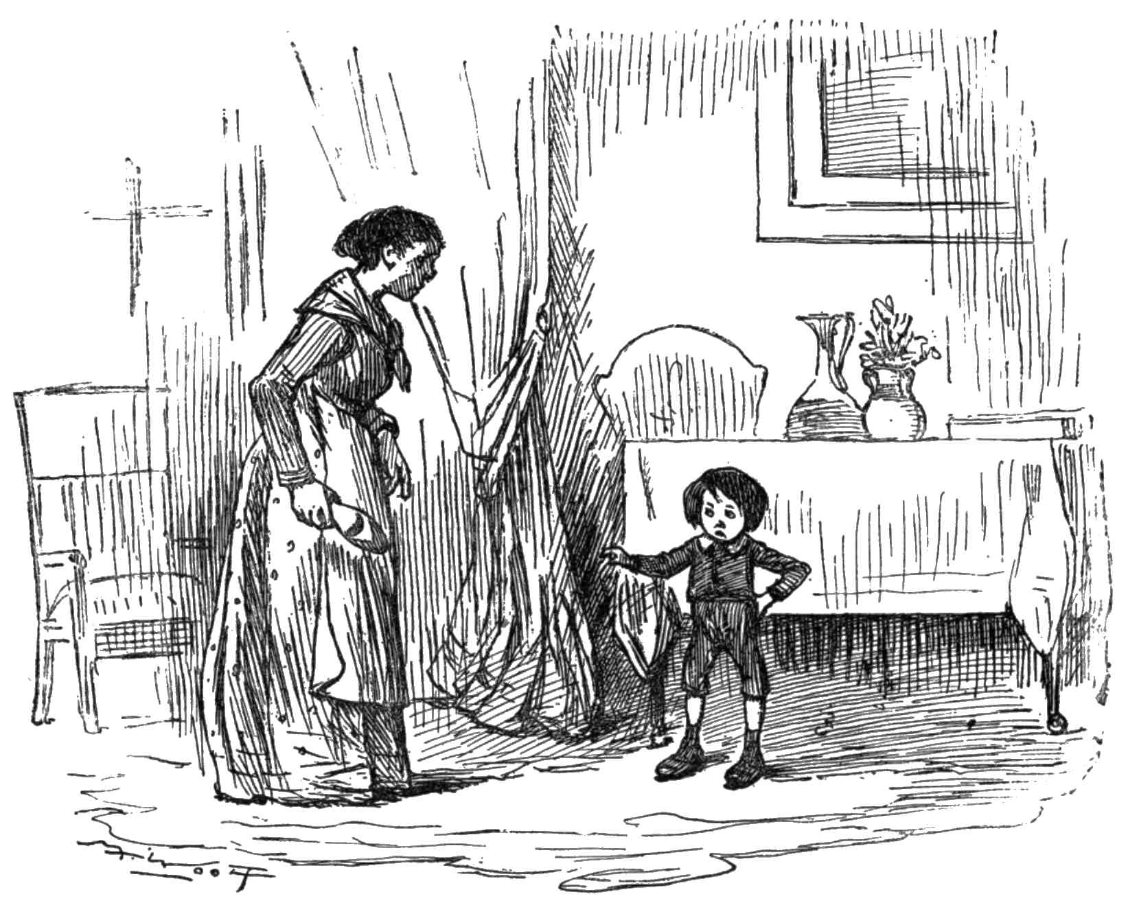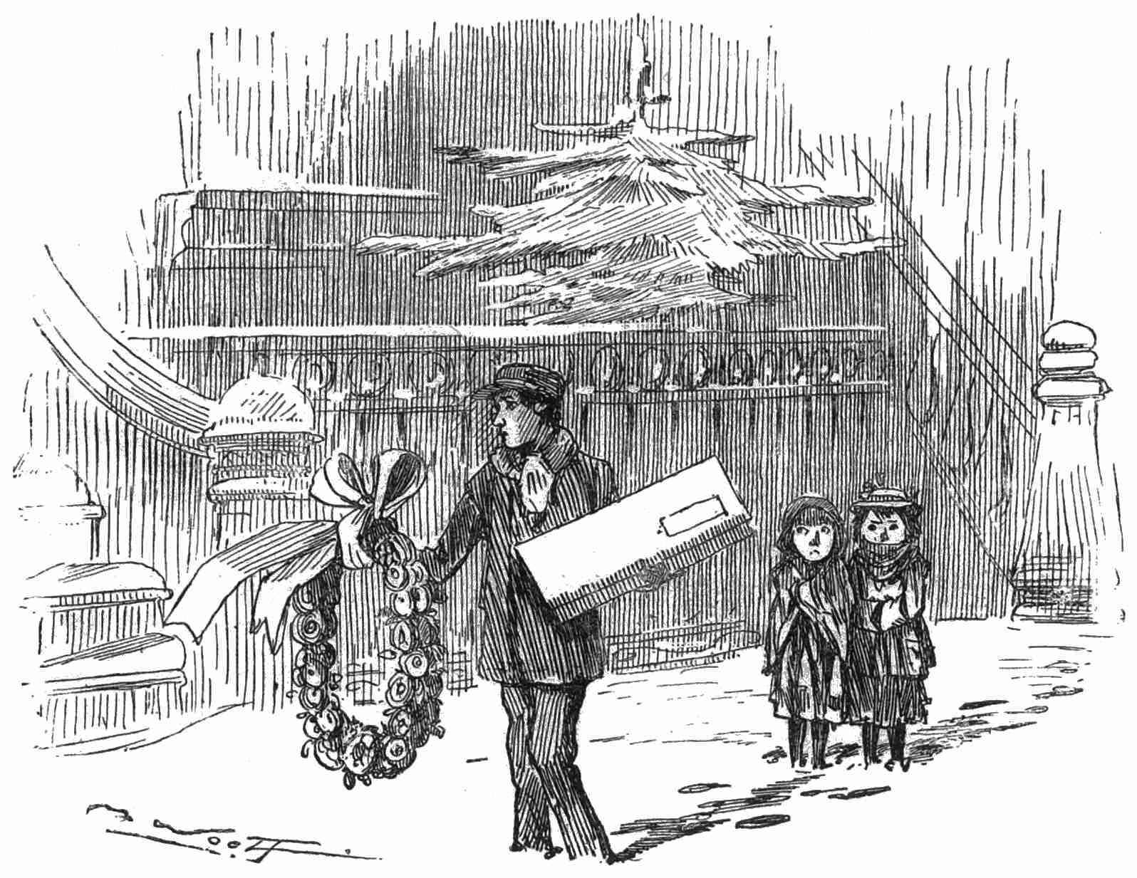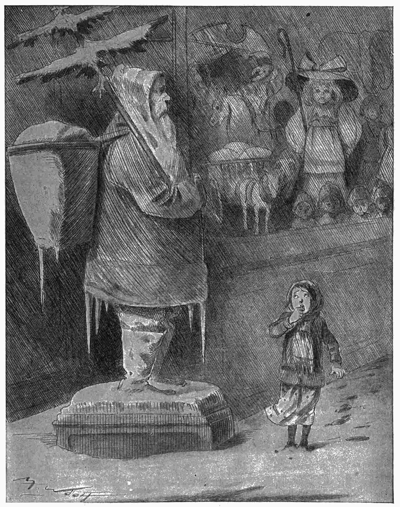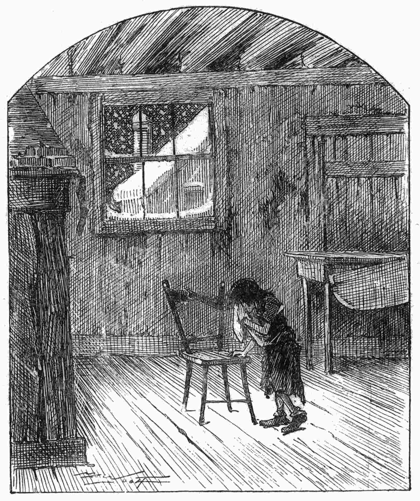 “If yer please, mum, Santa Claus can’t get into our room ’cause they ain’t no chimley, an’ I want ter know if yer won’t hang up this stockin’ when yer a-hangin’ up the children’s, an’ I’ll call in the mornin’ fer it.”