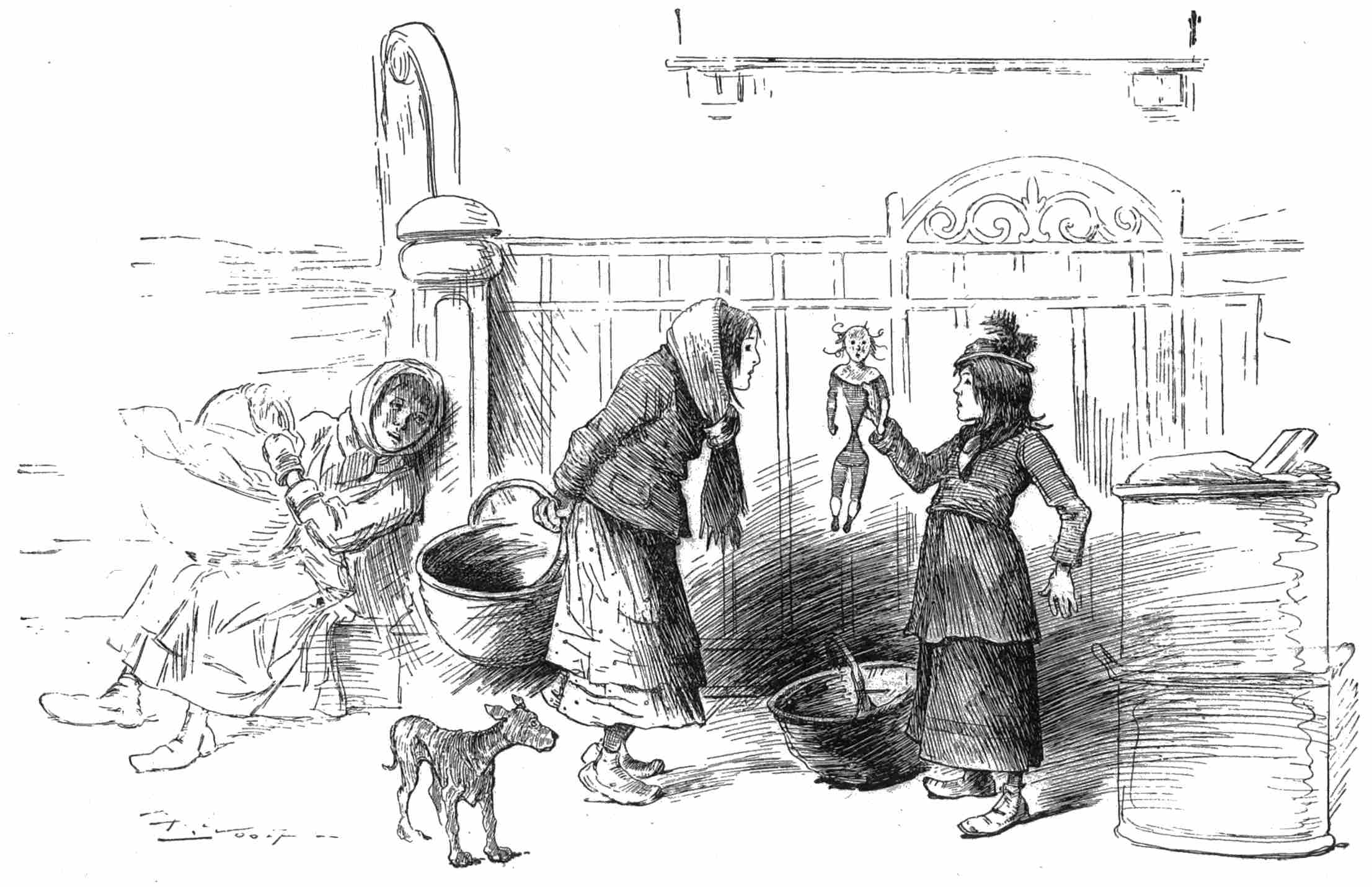 Young and Bashful Admirer: “If she should turn ’round and say to me that she loves me as she does that doll, what would I say?”
