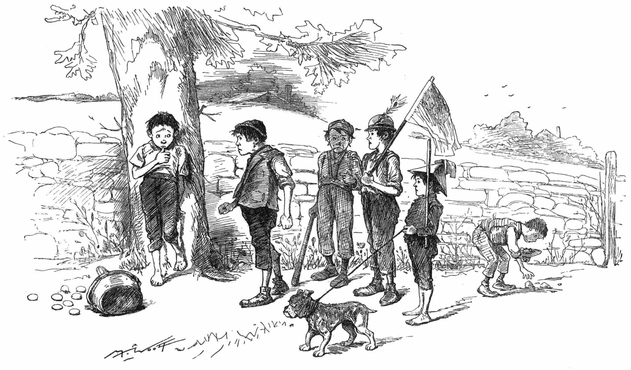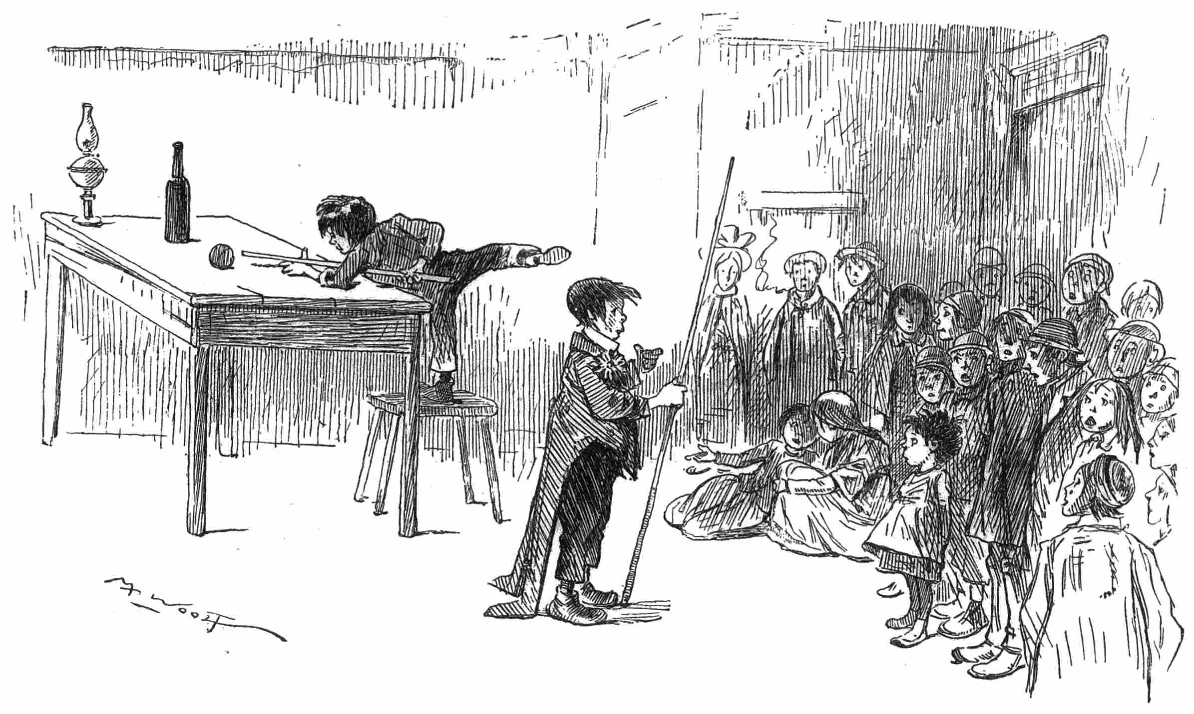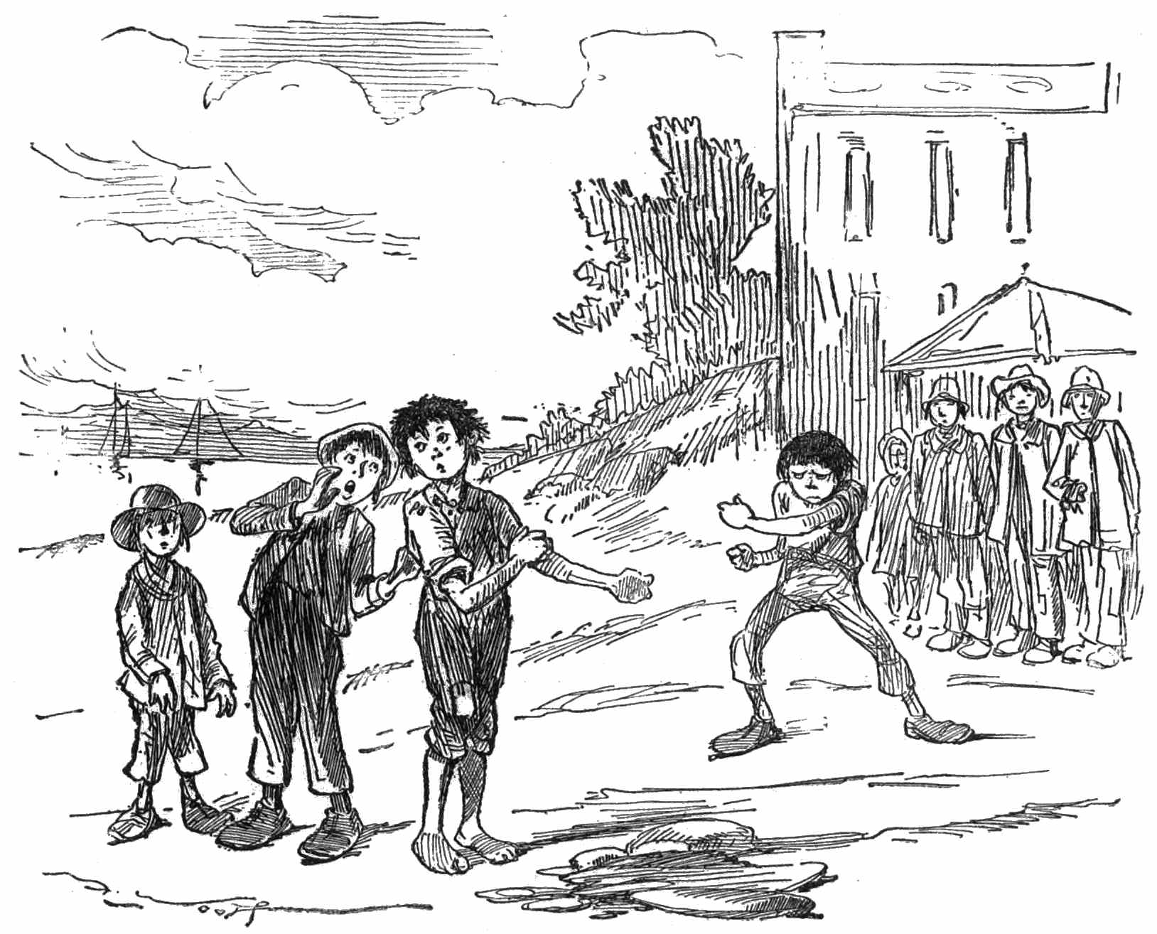 “Say, Tom, pretend yer a Spaniard, an’ let de gang play wid yer fer five minits.”