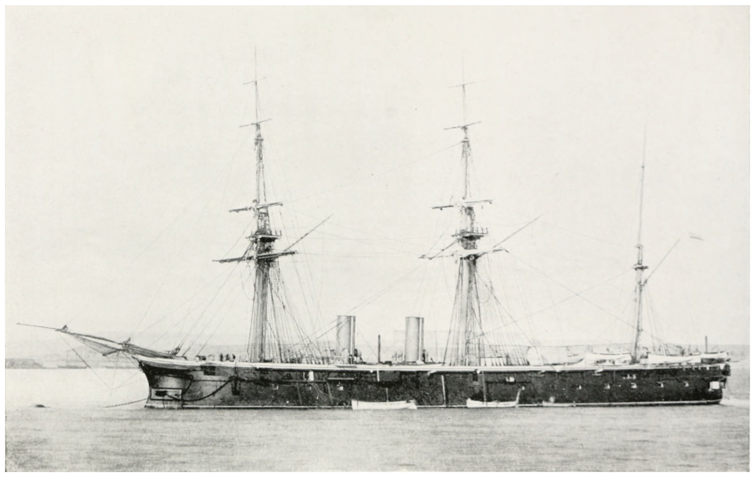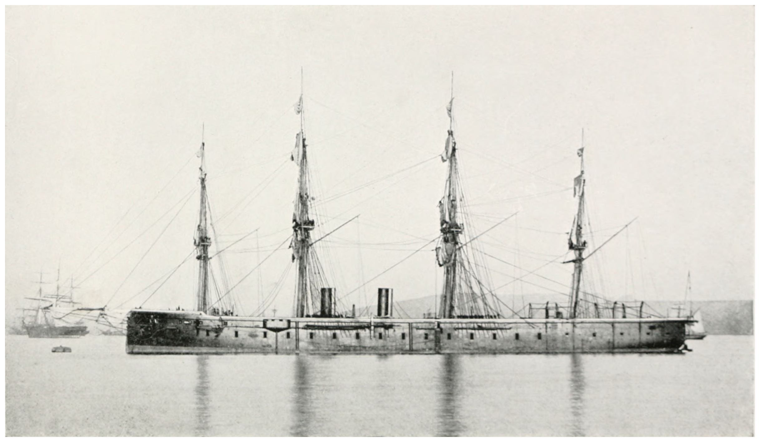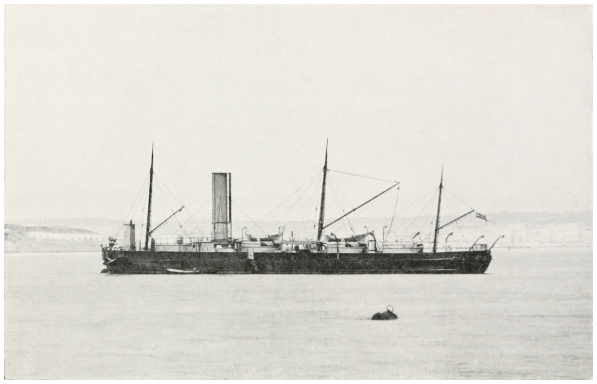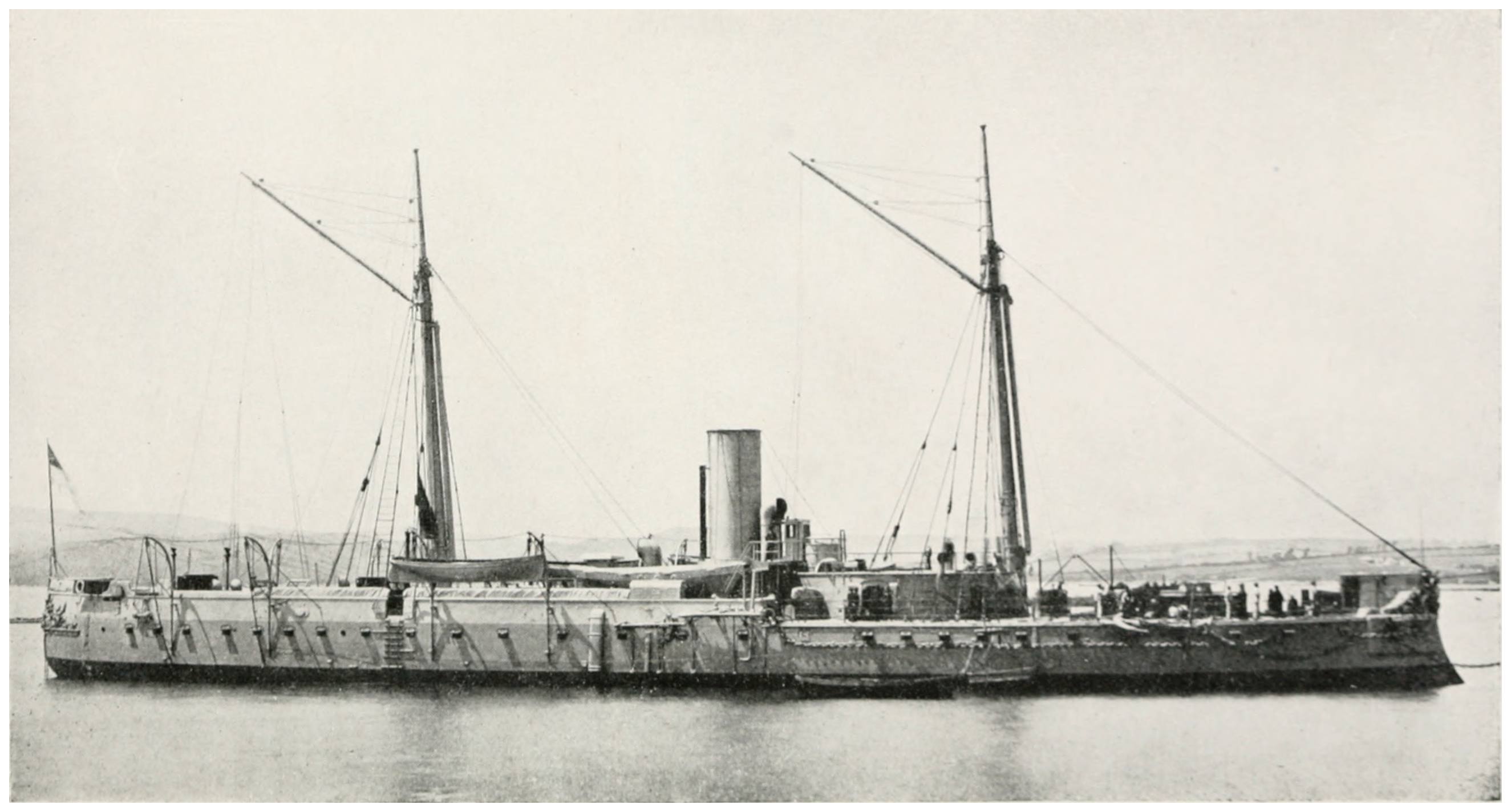 106 The Sultan was built as a ship-rigged ship. In 1894–96 she was “reconstructed,” two military masts being substituted for her original rig. She was also re-engined and re-boilered by Messrs. Thompson, of Clydebank. Beyond going out for the naval manœuvres one year she did not, however, perform any service in her altered condition, and is now used as a hulk.