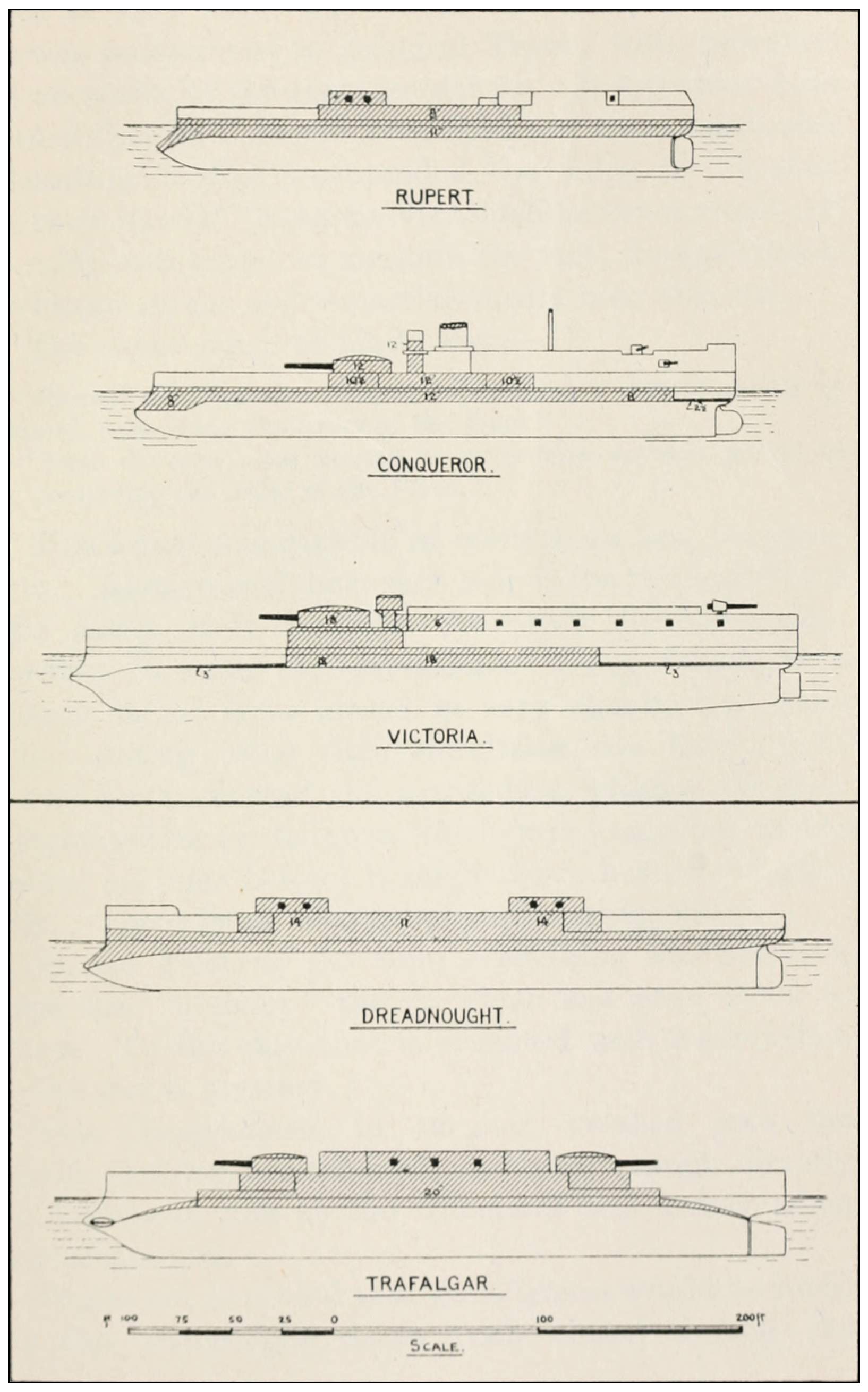 31 These were announced as intended to carry four 12-inch and eight 10-inch, besides smaller guns. The 10-inch proved later on to be mythical.