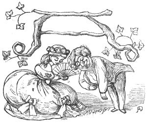 And so Philip is actually gone after his charmer, and is pursuing her summâ diligentiâ? The Baynes family has allowed this penniless young law student to make love to their daughter, to accompany them to[146] Paris, to appear as the almost recognized son of the house. “Other people, when they were young, wanted to make imprudent marriages,” says my wife (as if that wretched tu quoque were any answer to my remark!) “This penniless law student might have a good sum of money if he chose to press the Baynes family to pay him what, after all, they owe him.” And so poor little Charlotte was to be her father’s ransom! To be sure, little Charlotte did not object to offer herself up in payment of her papa’s debt! And though I objected as a moral man and a prudent man, and a father of a family, I could not be very seriously angry. I am secretly of the disposition of the time-honoured père de famille in the comedies, the irascible old gentleman in the crop wig and George-the-Second coat, who is always menacing “Tom the young dog” with his cane. When the deed is done, and Miranda (the little sly-boots!) falls before my squaretoes and shoe-buckles, and Tom the young dog kneels before me in his white ducks, and they cry out in a pretty chorus, “Forgive us, grandpapa!” I say, “Well, you rogue, boys will be boys. Take her, sirrah! Be happy with her; and, hark ye! in this pocket-book you will find ten thousand,” &c. &c. You all know the story: I cannot help liking it, however old it may be. In love, somehow, one is pleased that young people should dare a little. Was not Bessy Eldon famous as an economist, and Lord Eldon celebrated for wisdom and caution? and did not John Scott marry Elizabeth Surtees when they had scarcely twopence a year between them? “Of course, my dear,” I say to the partner of my existence, “now this madcap fellow is utterly ruined, now is the very time he ought to marry. The accepted doctrine is that a man should spend his own fortune, then his wife’s fortune, and then he may begin to get on at the bar. Philip has a hundred pounds, let us say; Charlotte has nothing; so that in about six weeks we may look to hear of Philip being in successful practice——”