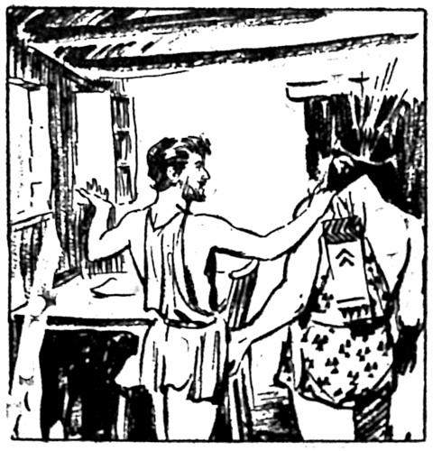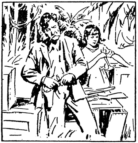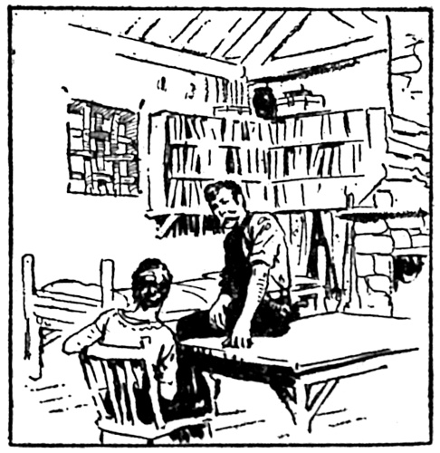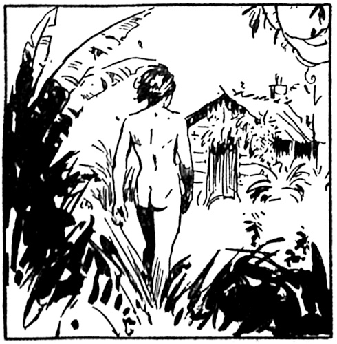 He called faintly. The man crawled in. D'Arnot spoke to him in French, then English, but he shook his handsome head. After examining d'Arnot's wounds he disappeared, coming back with fruit, water, pieces of smooth bark, and a pencil. Squatting beside d'Arnot, he wrote, handing the message to the Frenchman.