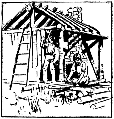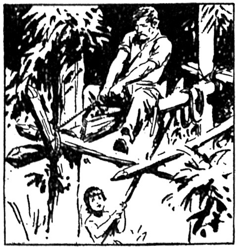Four trees were selected that formed a rectangle, and, cutting long branches from other trees, he constructed a framework around them, fastening the ends of the branches securely to the trees by means of rope, a quantity of which Black Michael fortunately had furnished him from the hold of the Fuwalda.
