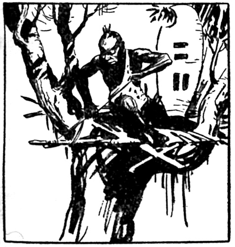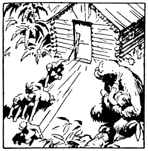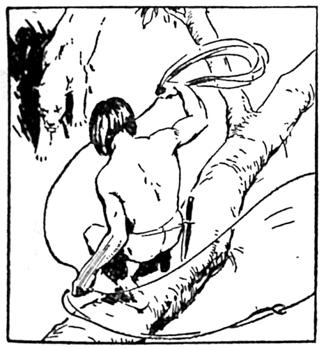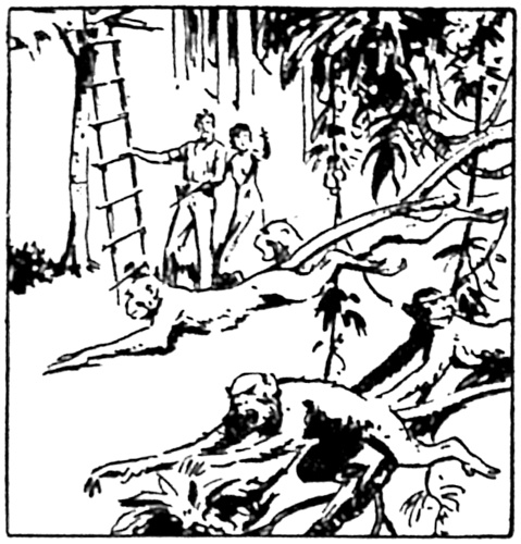 Scarcely had they closed their eyes than the terrifying cry of a panther rang out from the jungle. Closer and closer it came until they could hear the great beast directly beneath them. For an hour or more it sniffed and clawed at the trees that supported their platform.