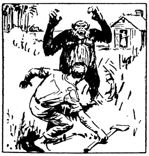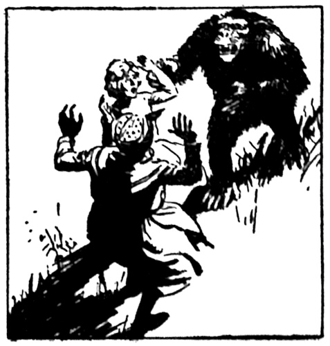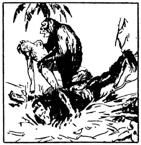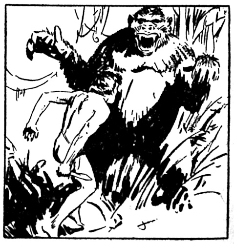 It was approaching through the jungle—a great anthropoid ape—and as it advanced it emitted deep guttural growls and an occasional low barking sound. Greystoke, who was at some distance from the cabin, was armed only with an axe, and the ferocious monster cut him off from escape to his retreat.