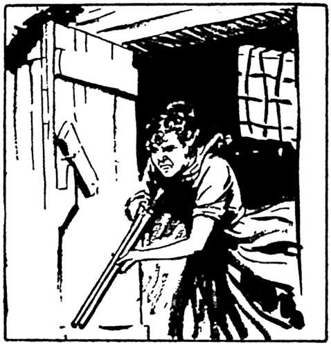 Over the brute's shoulder Greystoke saw with horror and fear his young wife come through the cabin door, armed with one of his rifles. Always before she was afraid of firearms, never touching them. Now she rushed toward the ape with the fearlessness of a lioness protecting its young.