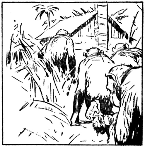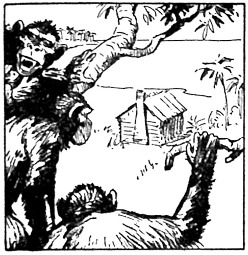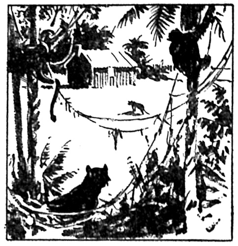 During the day the forest about them had been filled with excited birds of brilliant plumage, and dancing, chattering monkeys, who watched these new arrivals and their wonderful nest-building operations with every mark of keenest interest and fascination. By dusk the snug shelter was completed.