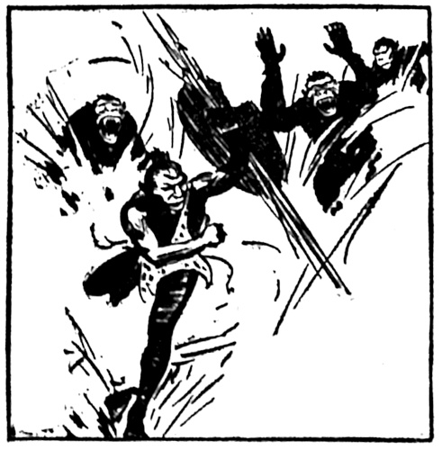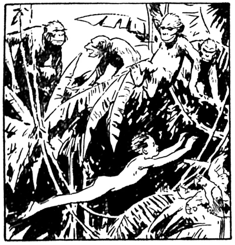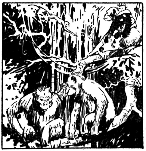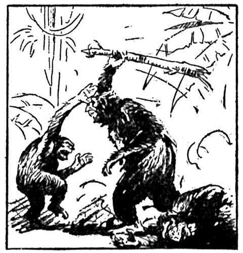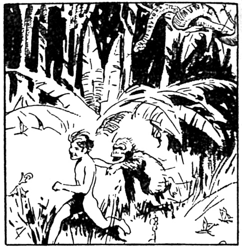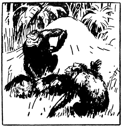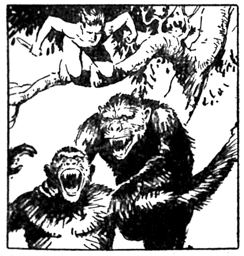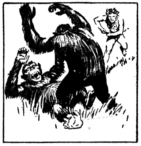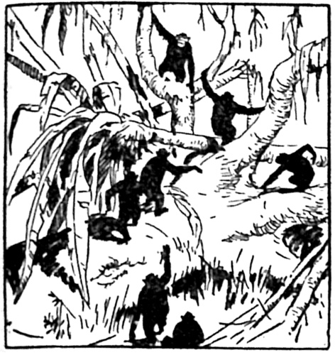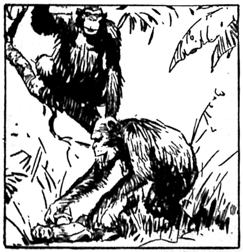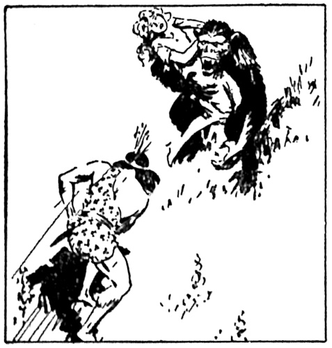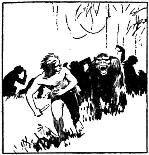 A sharp lookout was kept while they worked, and once they saw their little simian neighbors come screaming over the near-by ridge, and casting affrighted glances over their shoulders, evincing as plainly as though by speech that they were fleeing some terrible thing that lay concealed there. What was it?