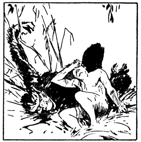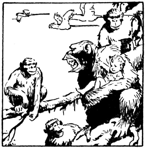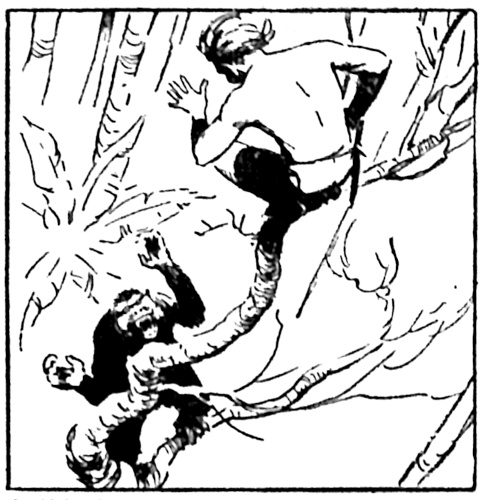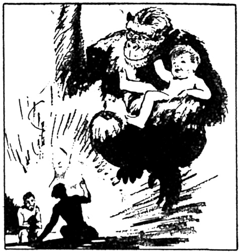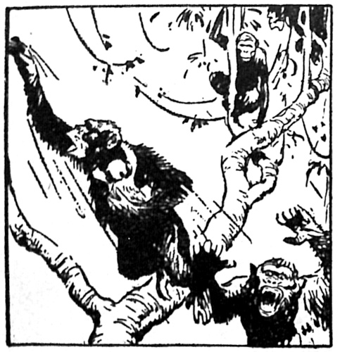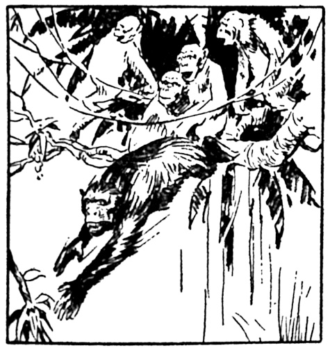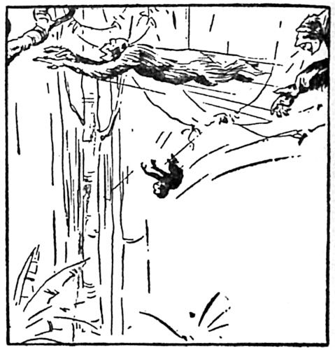 She made a furious leap far into space—from one tree to another—made it successfully. But as she grasped the limb of the further tree, the sudden jar loosed the hold of the tiny babe. She saw the little thing hurled—turning, twisting—to the ground thirty feet below.