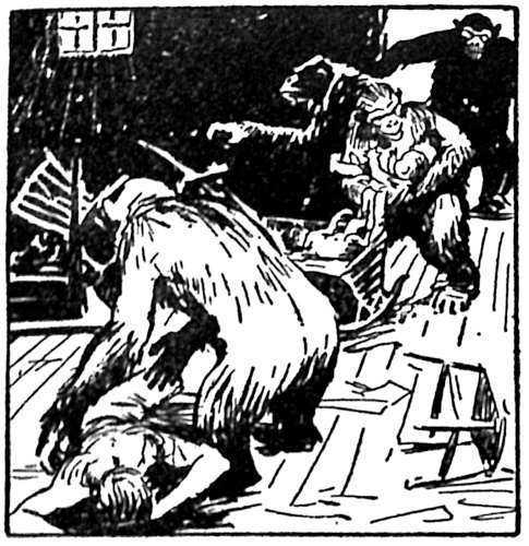Came a sharp report and a bullet entered the ape's back! The beast turned upon its new enemy. Lady Greystoke, terrified, tried to fire another bullet. Greystoke, regaining his feet, rushed to drag the ape from his wife's prostrate form. The bullet had done its work! The ape was dead.