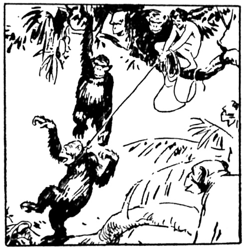 Tarzan had early learned to form ropes by twisting and tying long grasses together. By constant experimenting, he learned to tie rude knots and make sliding nooses. Then, with painstaking practice, he learned the art of roping. He would catch some playfellow thus, to the other apes' unlimited amusement.