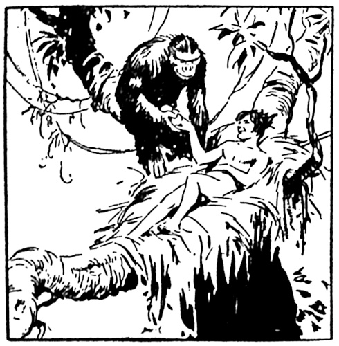 High up among the branches of a mighty tree she took refuge, hugging the shrieking infant to her bosom. Then hunger closed the gap between them and soon he became quiet. The son of an English Lord and an English Lady nursed at the breast of Kala, the great ape!
