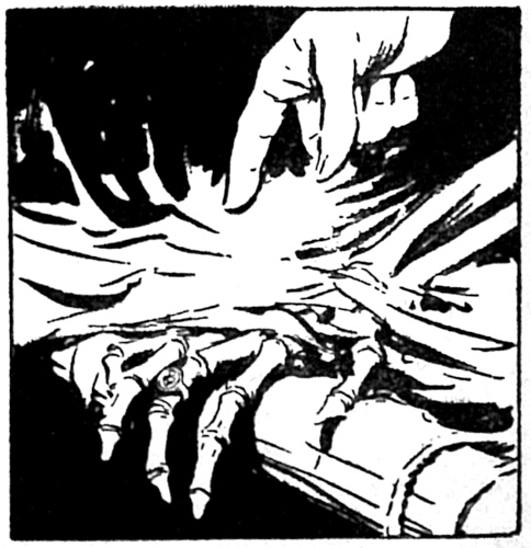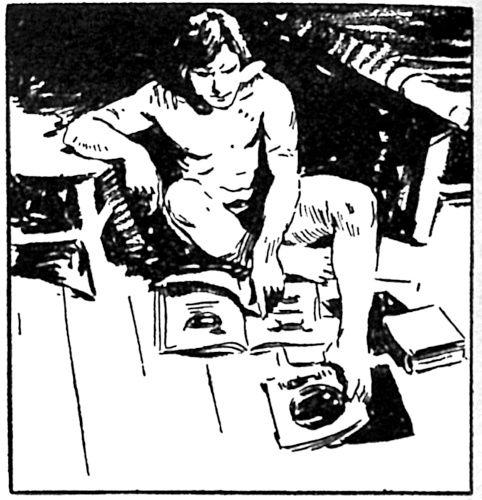 Tarzan requested that his own finger-prints be taken. This done, d'Arnot drew forth a little book, turning to a page where were several tiny smudges. Surprised, Tarzan watched, recalling how he had given the diary to his friend. Now he realized the meaning of their visit to the police bureau!
