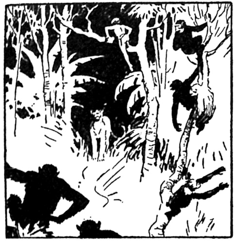 Tarzan of the Apes needed no interpreter to translate the story of those distant shots. With incredible rapidity he was swinging through the trees straight toward the savages' village. White men, men of his own race, might even now be suffering the agonies of torture. On he sped.