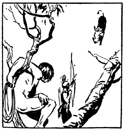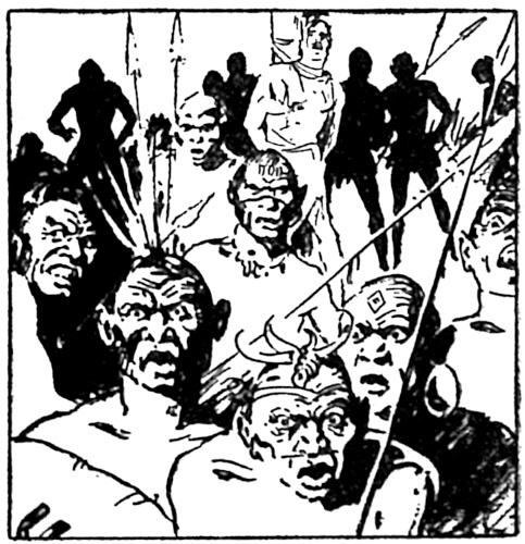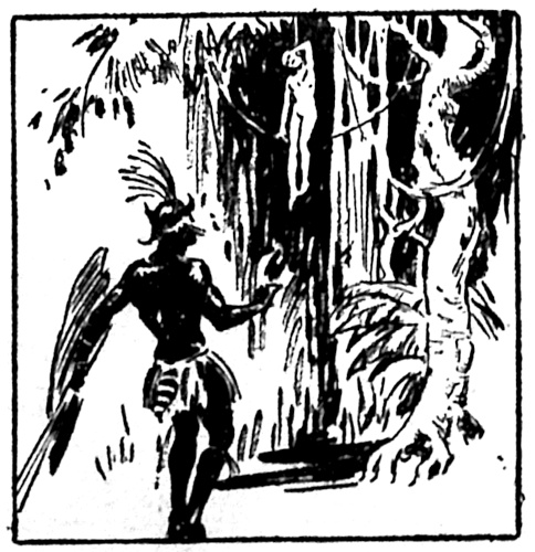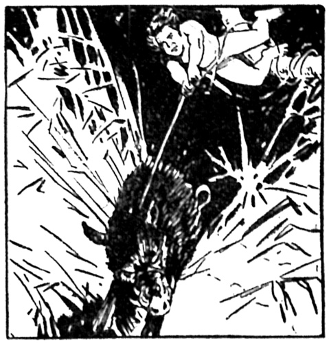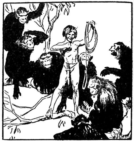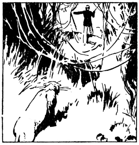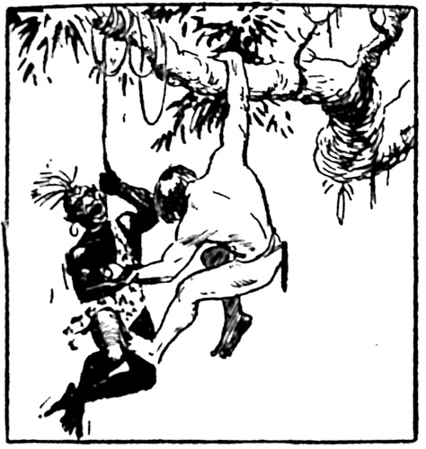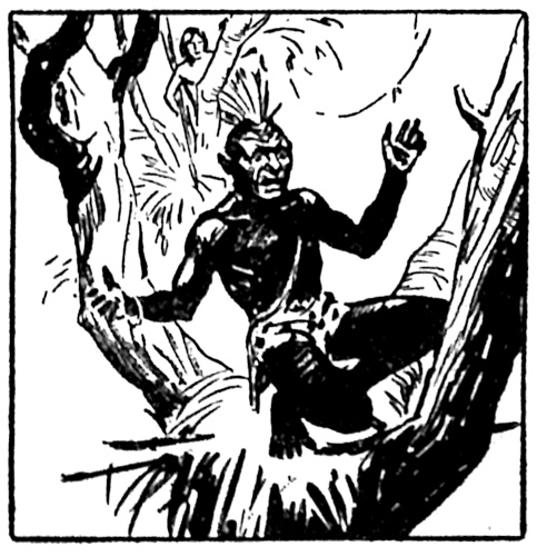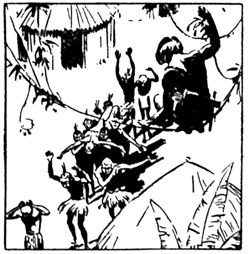 The rope sped with singing whir above the blacks' heads. A huge fellow lunged backward; struggling and shrieking, his body moved toward the trees. Then straight into the air, disappearing into the foliage. The blacks, screaming with fright, raced madly for the village gate. D'Arnot was left alone!