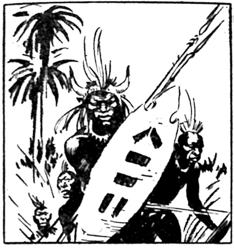 The little expedition searching for Jane pushed their way slowly through the tangled jungle. Lieutenant d'Arnot was in the lead, a hundred yards in advance. Suddenly six black warriors arose about him. He gave a warning shout, but before he could draw his revolver he was dragged into the jungle.