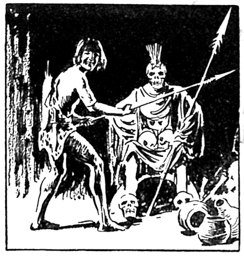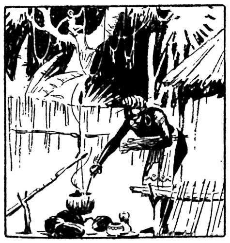 When d'Arnot regained consciousness, he found himself lying in a little shelter of boughs. Soon he recalled the whole hideous scene at the stake; the strange white figure carrying him away. What fate lay in store for him now?... Outside the hut he saw the squatting figure of a man.