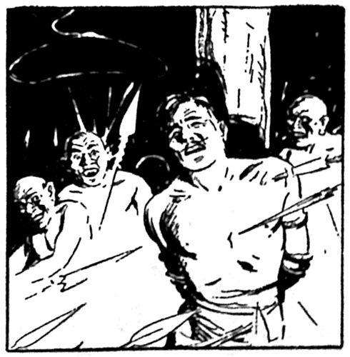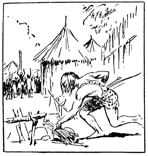 D'Arnot was bound securely to a great post. The women fetched pots and water; others built a row of fires. He watched them, half-fainting with pain, but not once did he cry out. The dance of death commenced to circle around the doomed officer, moving nearer and nearer.