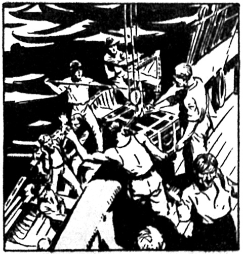 Early next morning Lord and Lady Greystoke's chests and boxes were hoisted on deck and lowered to waiting small boats for transportation to shore. There was a great quantity and variety of stock, arms, and ammunition, as they had expected a possible five years' residence in their new West Coast African home.