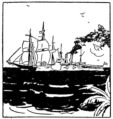 Before dark, the barkentine lay peacefully at anchor in a land-locked harbor. The surrounding shores were beautiful with semi-tropical verdure, while in the distance the country rolled from the ocean in hill and table-land, almost uniformly clothed in primeval forest. No signs of habitation were to be seen.