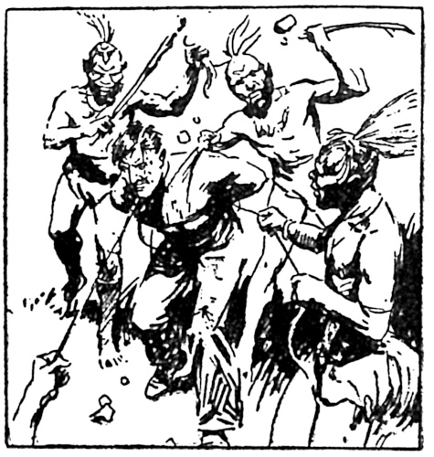 Arriving there at dusk, a great throng rushed out to meet them. Then began for the French officer the most terrifying experience that man can encounter—the reception of a white prisoner into a village of African cannibals. They fell upon him, beating him with merciless blows, tearing his clothes away.