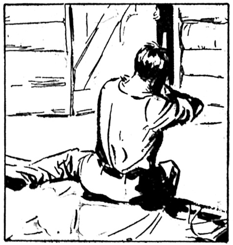 With the gun's report, d'Arnot saw a man pitch headlong into the cabin. In an instant he realized he had shot his friend and protector, Tarzan of the Apes. With a cry of anguish, d'Arnot sprang to the ape-man's side, lifted his head, calling Tarzan's name aloud. There was no response.